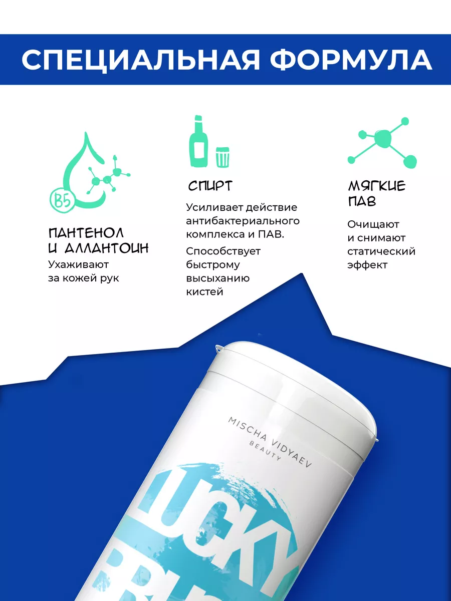 Артикул 103635345 Состав вода, аллантоин, антибактериальный компонент, спирт, пантенол, катионное пав, анионные пав