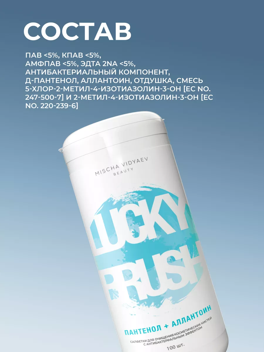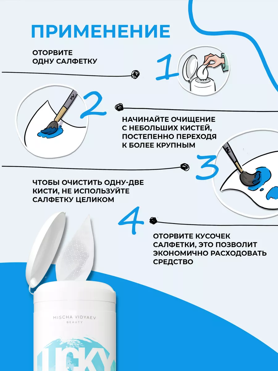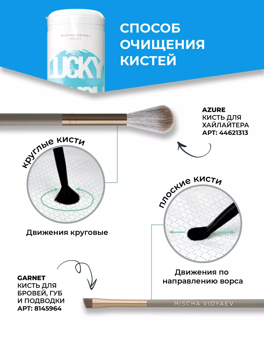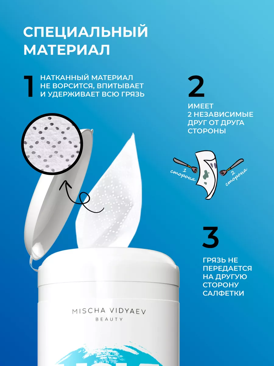 Комплектация Салфетки очищающие для косметических кистей для макияжа 100 шт; открытка; кисть
