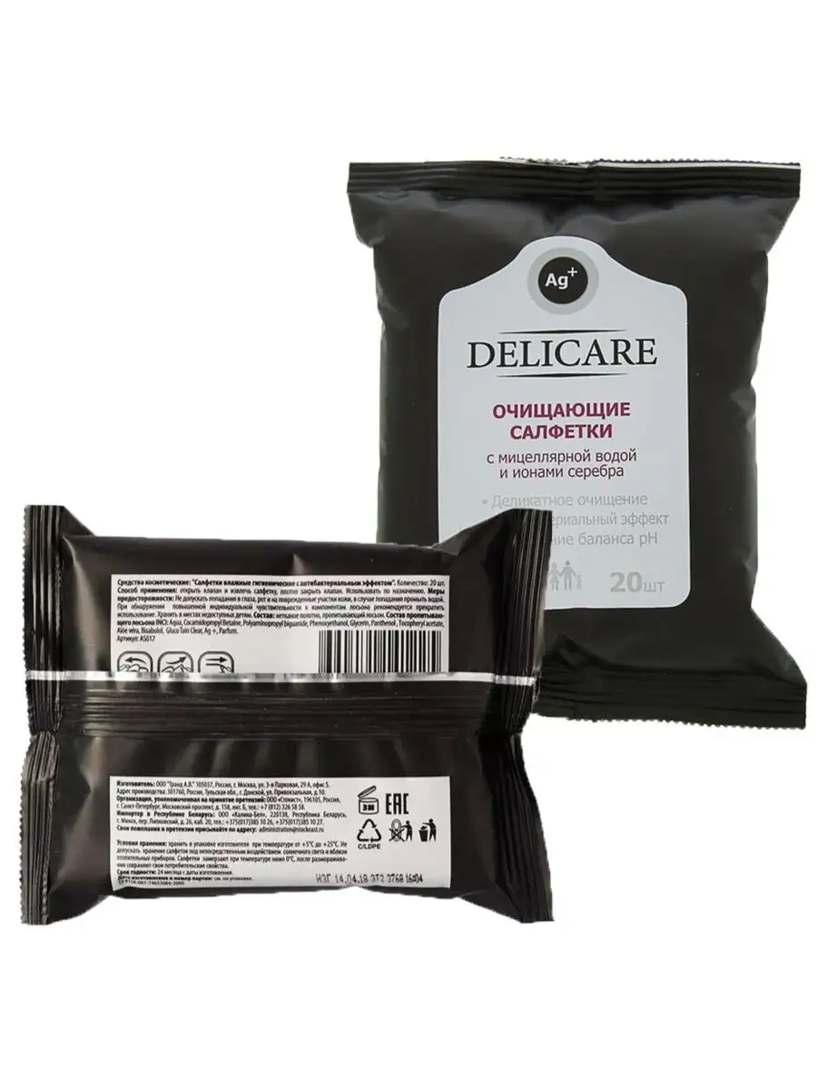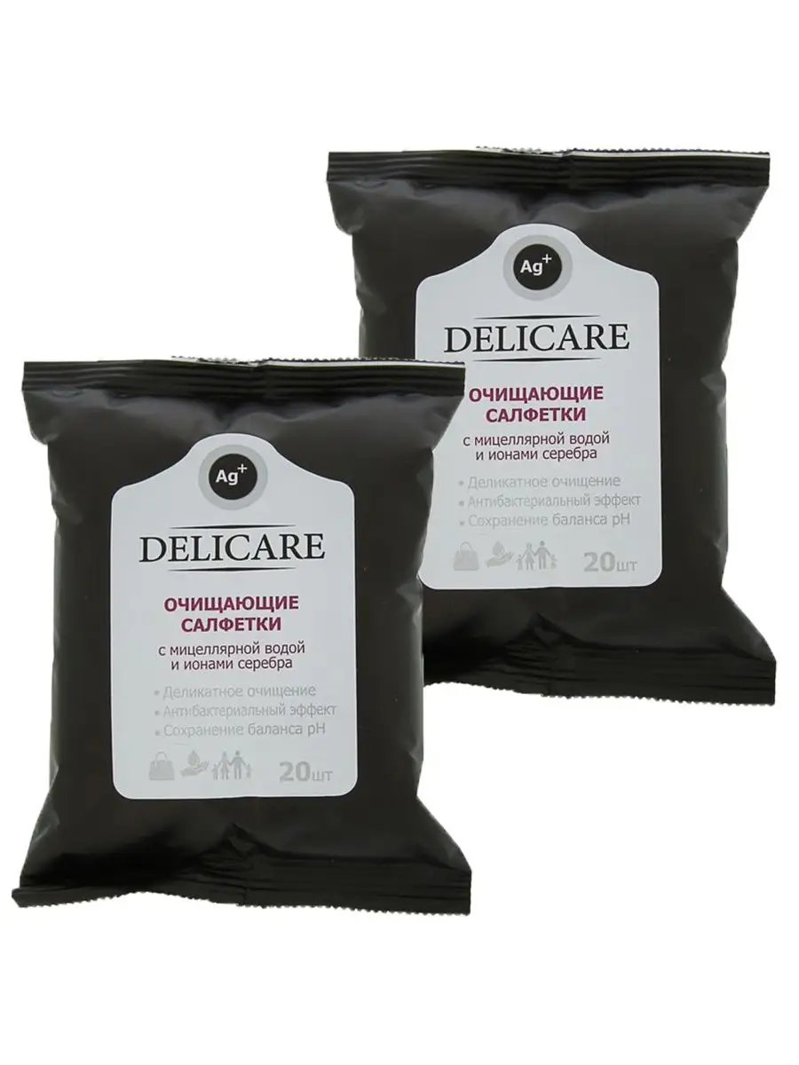Салфетки с мицеллярной водой и ионами серебра, 2 уп*20 шт