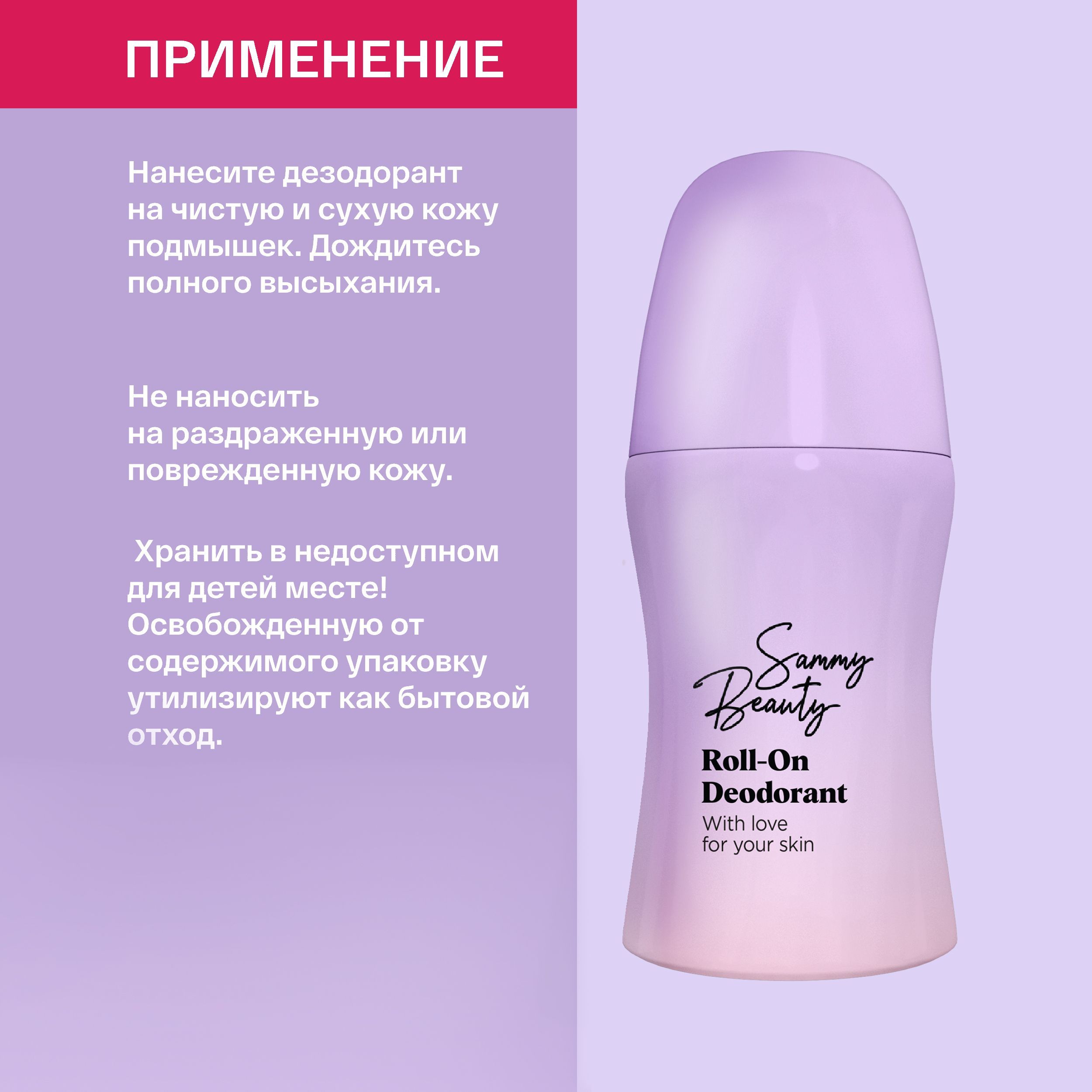 SAMMY BEAUTY Женский роликовый дезодорант антиперсперант для тела против запаха пота. Парфюмированное средство без следов пятен и уход за кожей подмышек от потливости, 50 мл