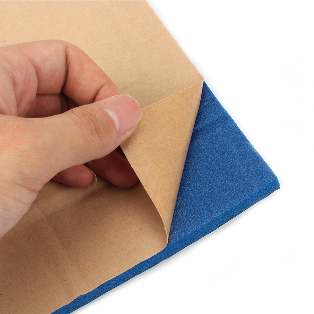 5, Paste Aluminum Soundproof/Damping Plate,you could heat with a hair dryer to make it soft, then compacted by hand. If the room temperature is below 5 degrees Celsius, first with sun lamp heating it until soft. Then remove the wax paper and paste it