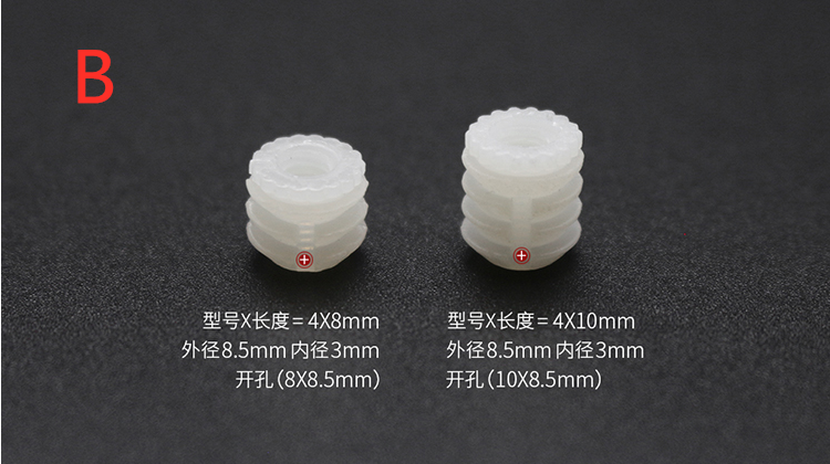 Used for self-tapping screw holes, effectively protecting the appearance of the board, and extending the life of the screw tap for easy replacement