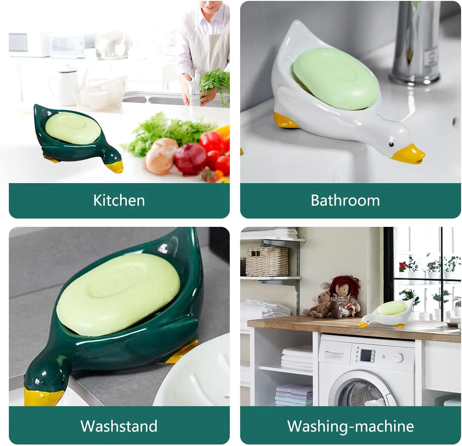 Внешний вид: наш держатель для мыла отличается от обычного держателя для мыла, мы принимаем милый дизайн в форме утки, это не только мыльница, но и очень красивое украшение для дома.