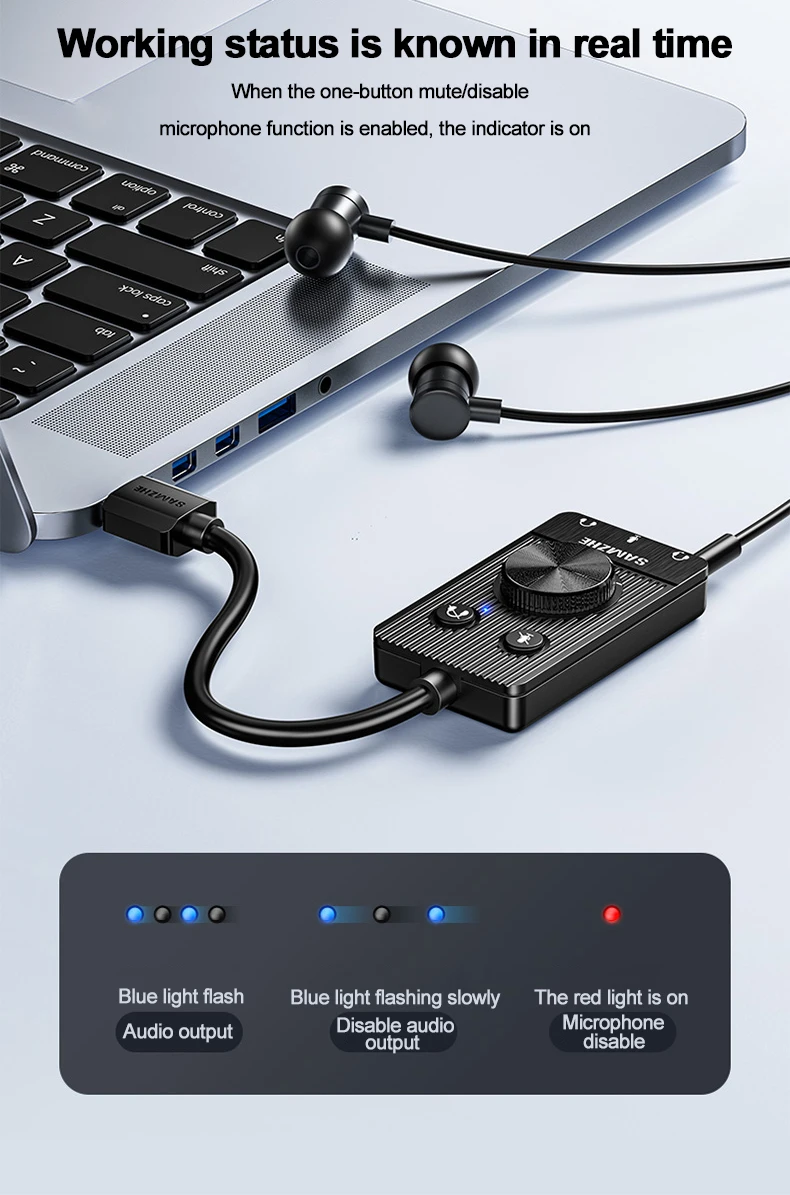 SAMZHE USB звуковая карта Внешний интерфейс 3,5 мм Φ Звуковая карта для ноутбука PS5/4 гарнитура USB звуковая карта