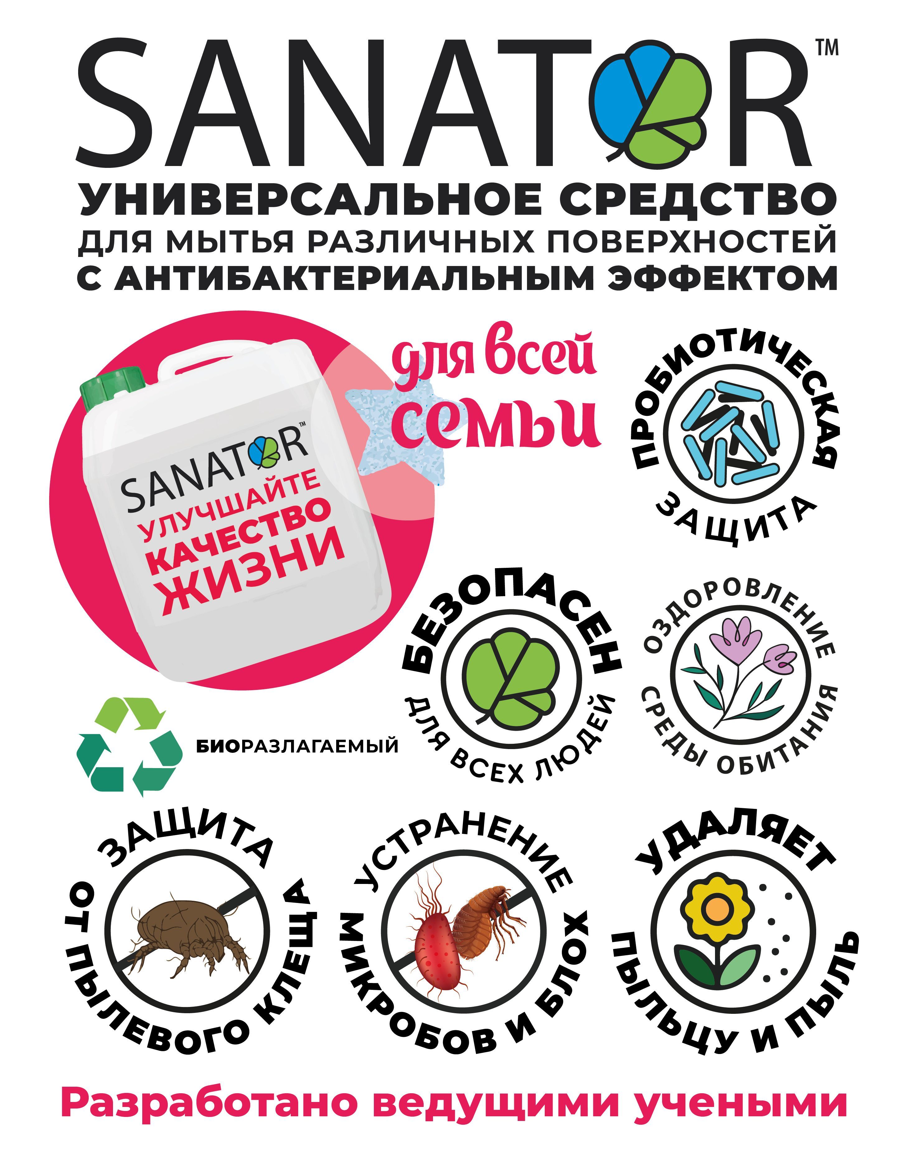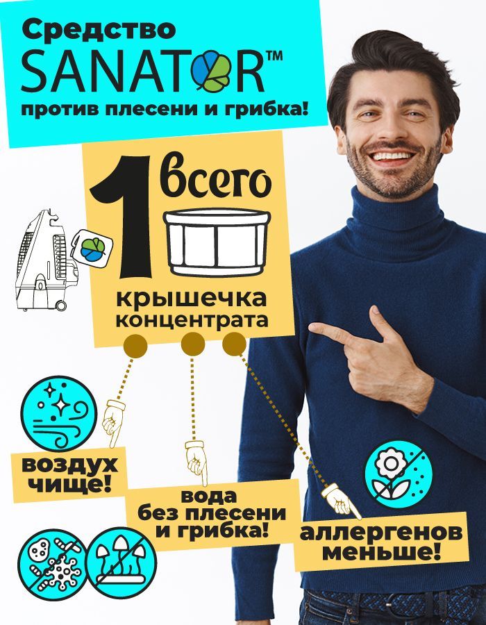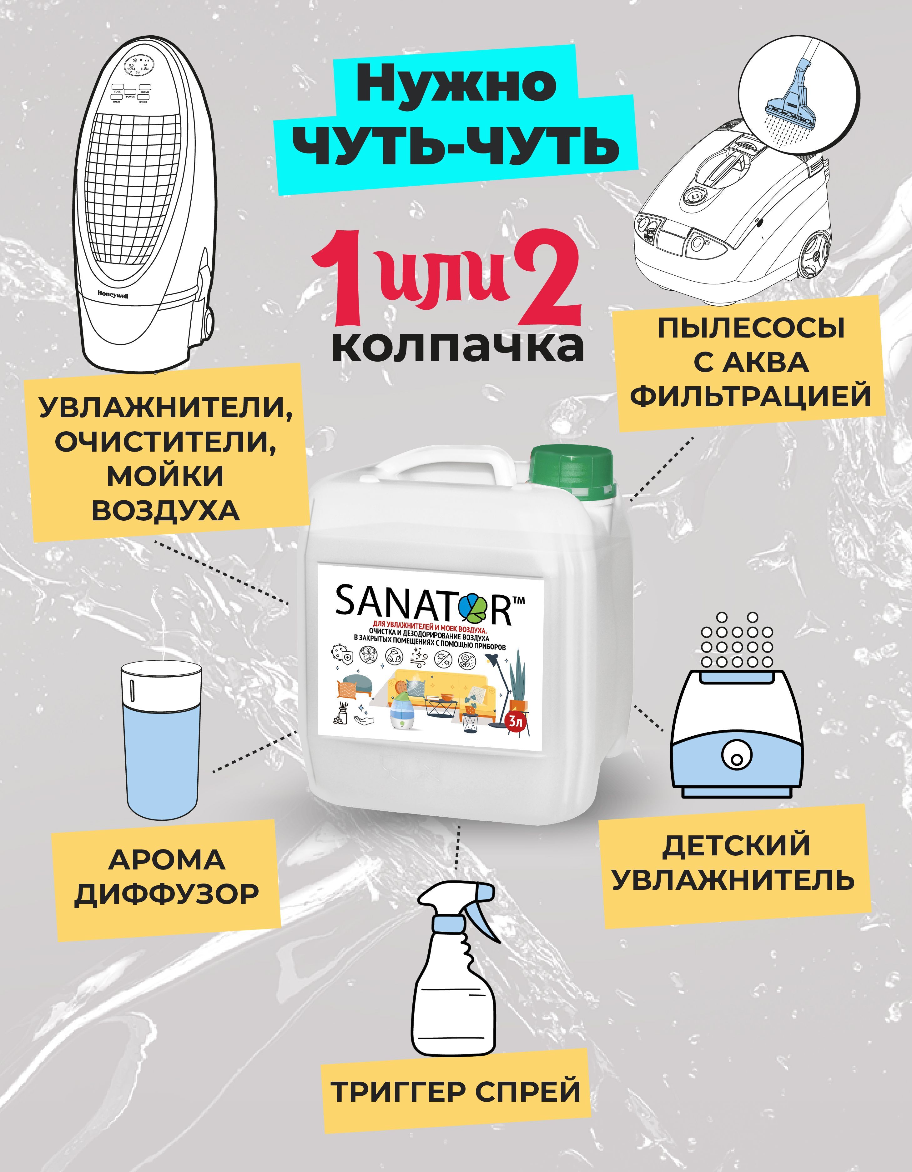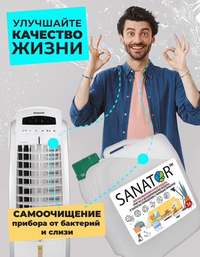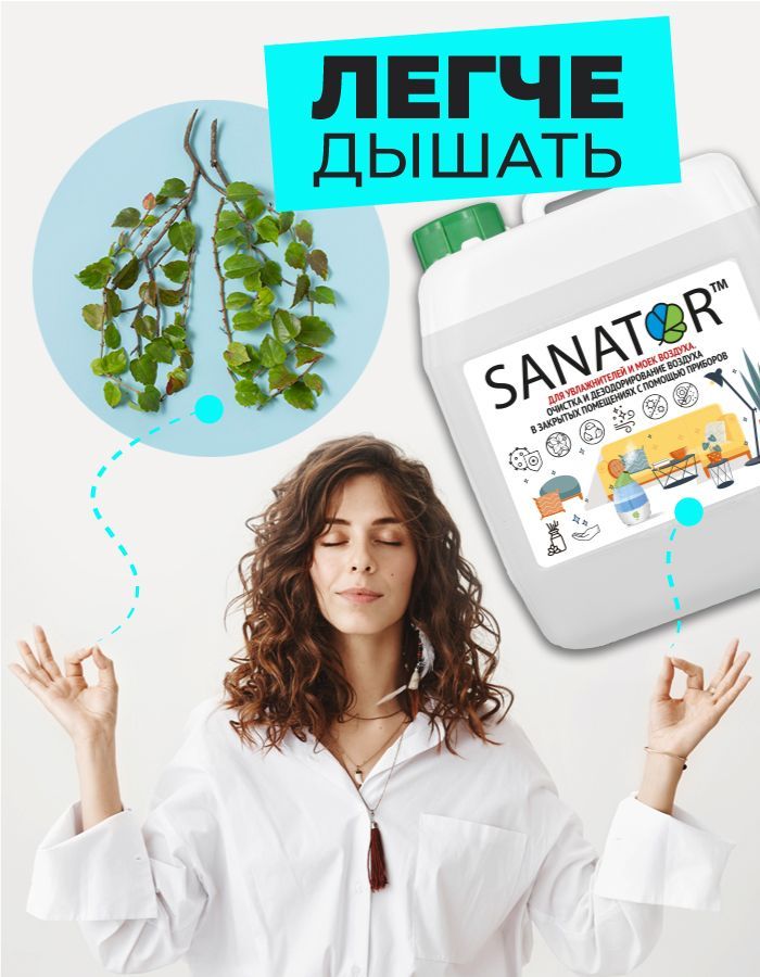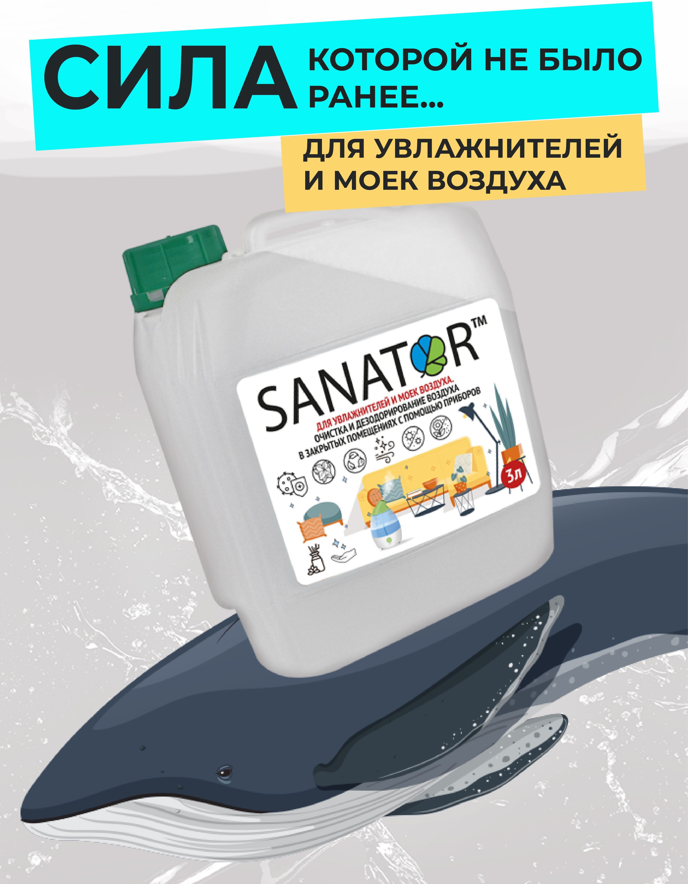 SANATOR-N биоразлагаемая гигиеническая добавка для увлажнителей и моек воздуха оздоравливает воздух в комнате, обеспечивает профилактику вирусных заболеваний, уничтожает микробы и вирусы.