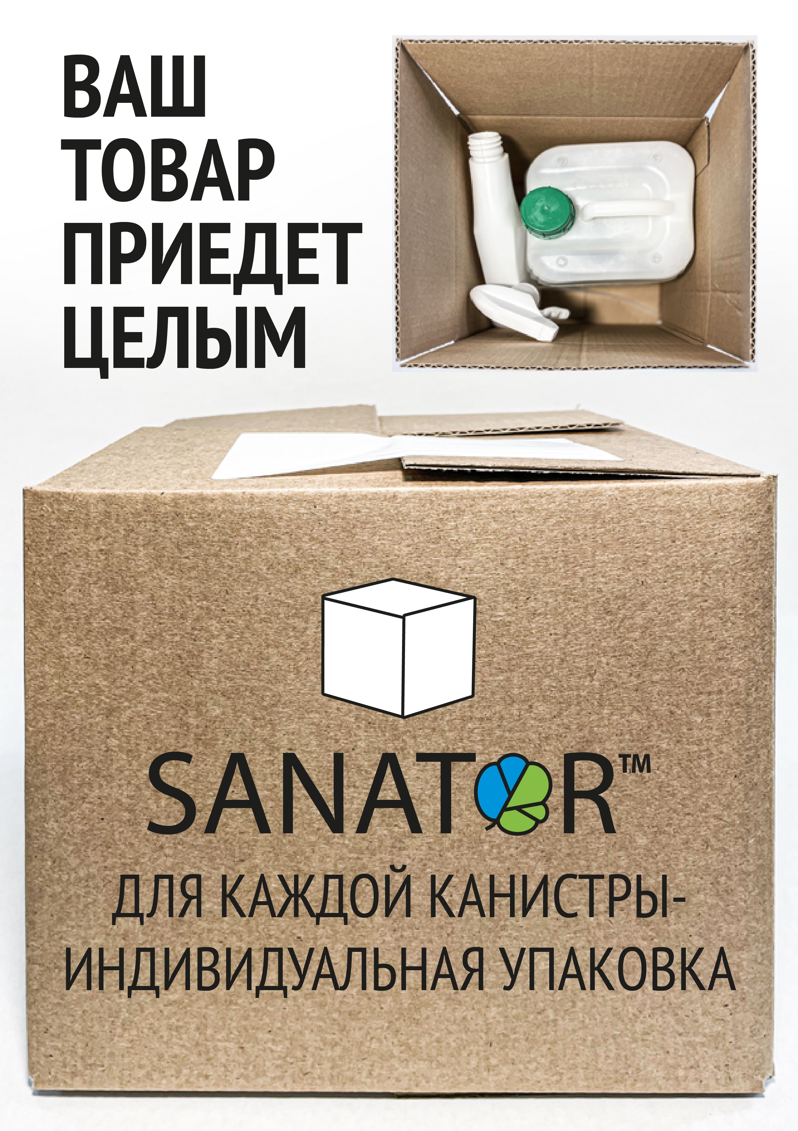 Канистра SANATOR - 1 шт. Триггер распылитель - 1 шт. Каталог применения - 1 шт. Коробка - 1 шт.