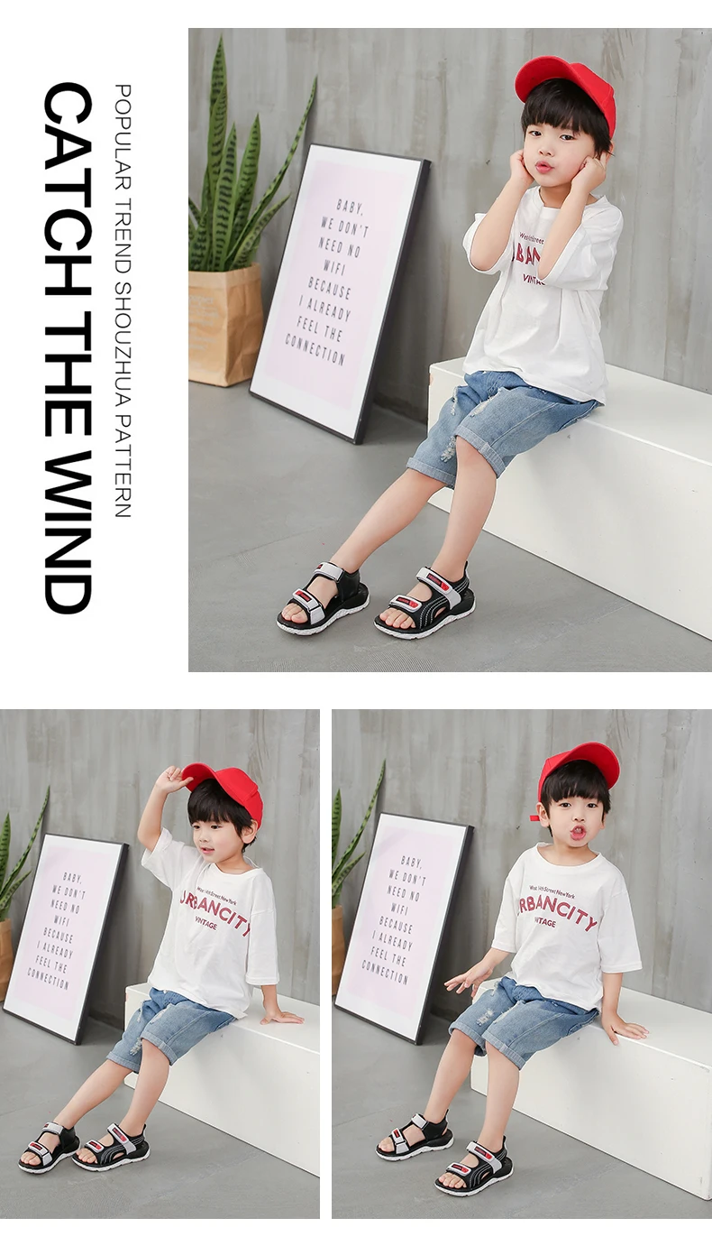 Сандалии детские из натуральной кожи, модная пляжная обувь для мальчиков, летние модные босоножки, европейские размеры 26-37