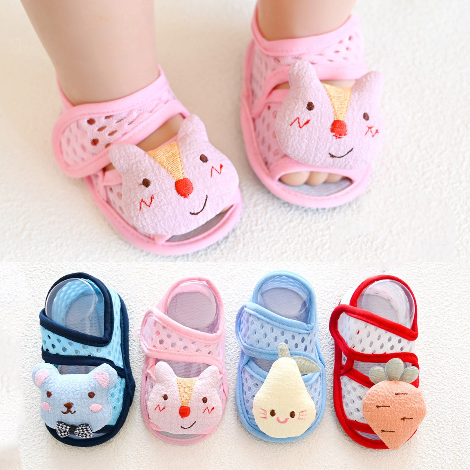Сандалии для новорожденных, дышащая сетчатая обувь для начинающих ходить, Нескользящие, мультяшный рисунок, для мальчиков и девочек, летняя обувь для первых шагов