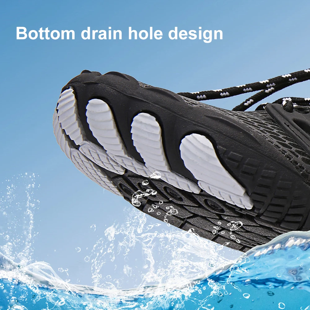 3. Быстрая Сушка с дренажным отверстием: Уникальный с отверстиями для обеспечения правильного потока воды из них, который создает более прохладную и здоровую среду обуви, дренажное отверстие предназначено для быстрой сушки и дренажа.