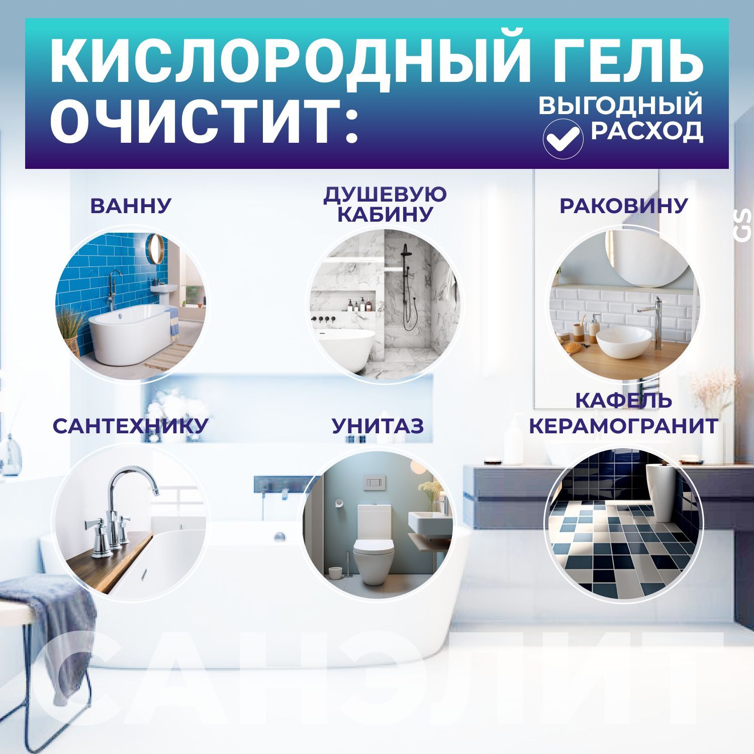 Санэлит Средство чистящее Кислородный гель, 500 мл - 1 шт