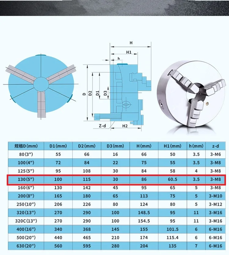 SANOU 3 кулачковый самоцентрирующийся токарный патрон 130 мм, свитковый патрон, K11-130 патрон для токарного станка