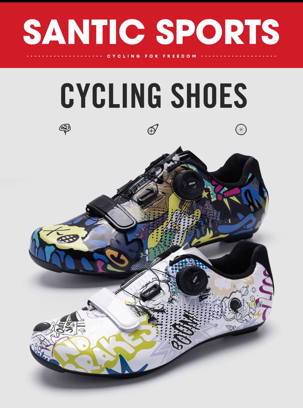Santic Road Cycling Lock обувь с красочным принтом для велосипеда, Нейлоновая подошва, обувь с замком для мужчин и женщин