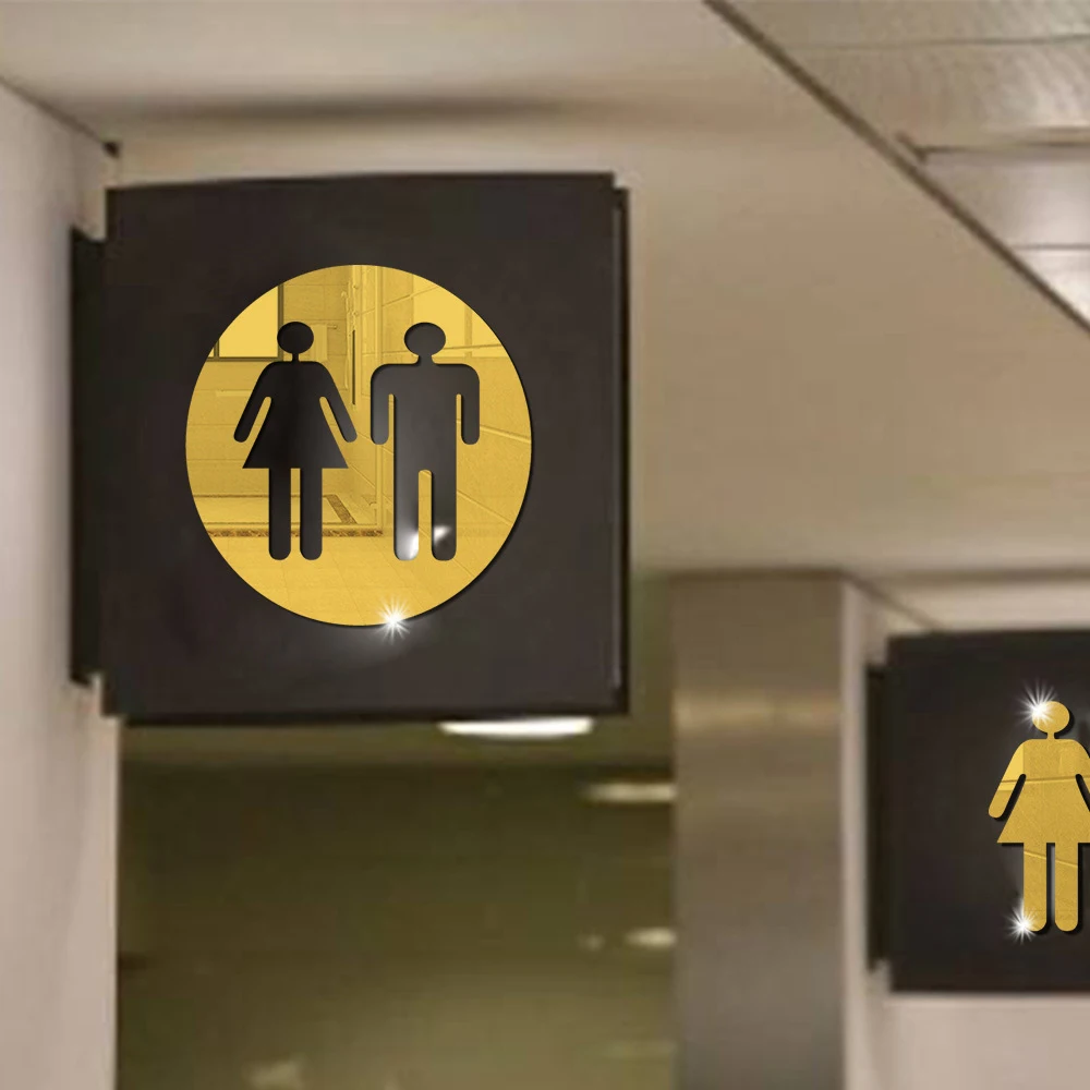 Санузел 3D наклейки на стену; Мужская и женская зеркальная поверхность Наклейка знак входа в туалет забавные WC украшения съемный