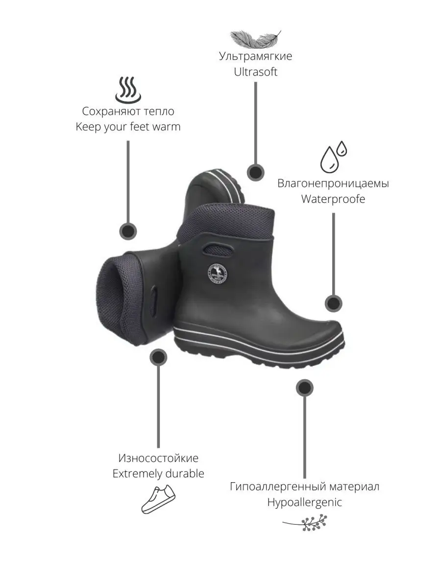 Описание: **СООТВЕТСТВИЕ РАЗМЕРОВ: Размер - Российский размер |36-37 - 35-35,5| |37-38 - 36-36,5| |38-39 - 37-37,5| |39-40 - 38-38,5| |40-41 - 39-39,5| |41-42 - 40-40,5|** Утепленные женские резиновые короткие сапоги "ЭкоБутс" разработаны для сырой и дождливой погоды. Модель снабжена теплым многослойным фольгированным чулком, защищённым специальной сеткой для повышения износостойкости, позволяющим носить сапоги при температуре до -20 градусов. При необходимости чулок можно снять, что позволяет расширить сезонность их использования. Невероятно легкие, модные, удобные и мягкие. Внутренняя поверхность подошвы имеет анатомическую поддержку стопы и массажный эффект. Сохраняют форму при длительной носке и больших нагрузках. Не подвержены воздействию грибка, гипоаллергенны. Защищают ногу от попадания воды, песка и грязи. Прекрасно подходят для прогулок по городу, а также отдыха на природе, туризма, работы в саду и огороде. Посадка может отличаться в зависимости от индивидуального строения стопы. Данный товар можно найти по запросам: сапоги резиновые, сапоги резиновые женские, сапоги резиновые взрослые, сапоги женские резиновые ЭВА, сапоги резиновые зимние, сапоги резиновые утепленные, сапоги резиновые короткие, сапоги ЭВА.
