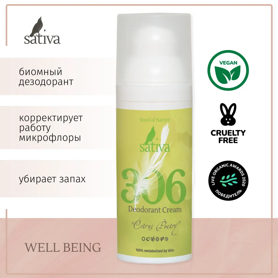 Sativa Дезодорант для тела кремовый Цитрусовые стихи №306 50мл