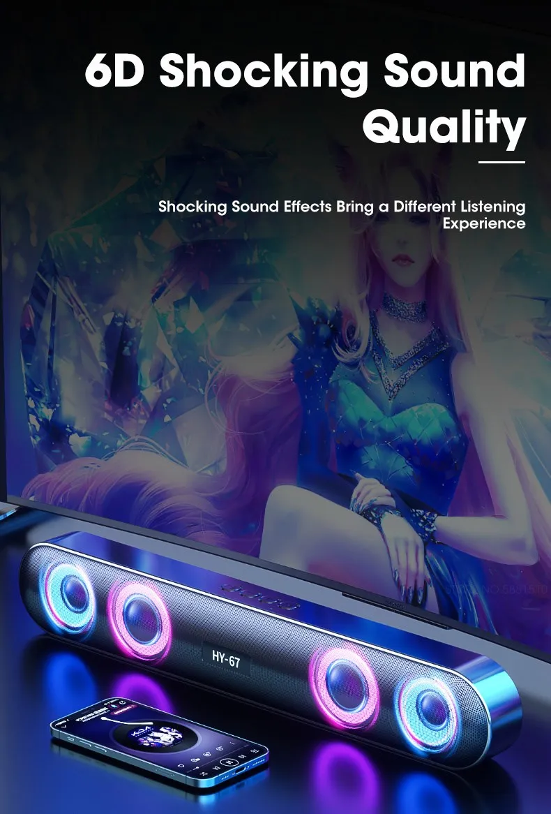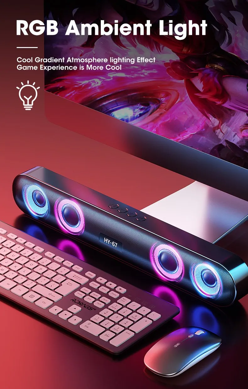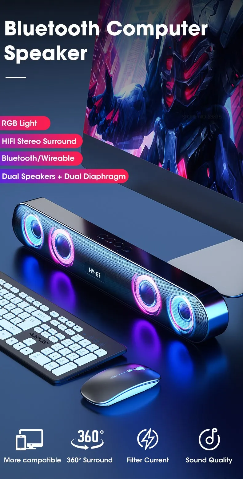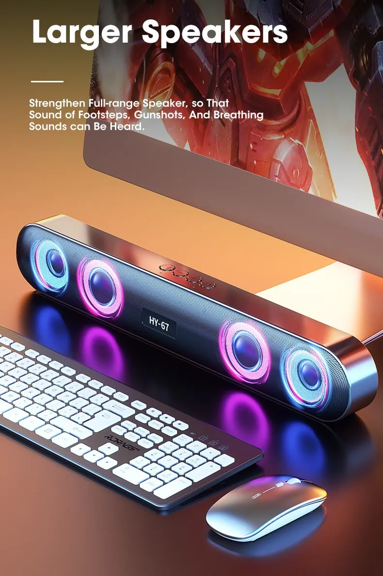 Саундбар для ПК беспроводной 6D объемный динамик Bluetooth 5,0 Домашний проводной компьютер стерео сабвуфер динамик звуковая панель для ПК ноутбука компьютера