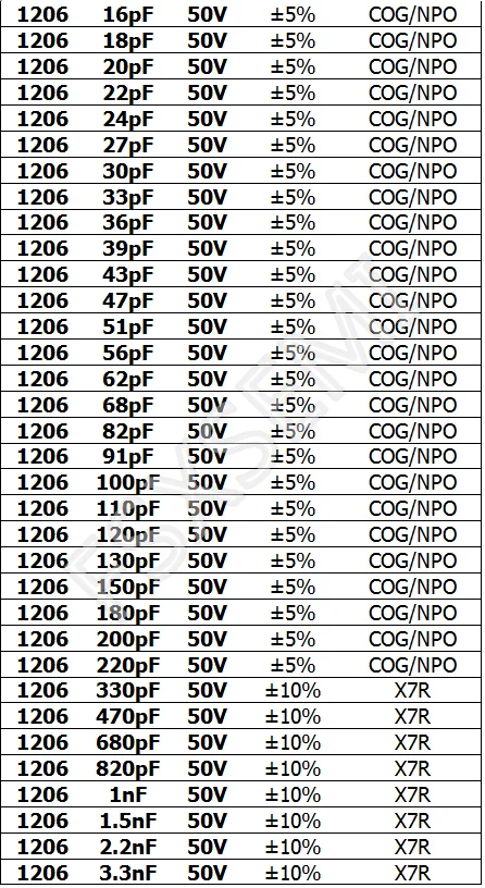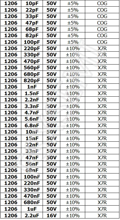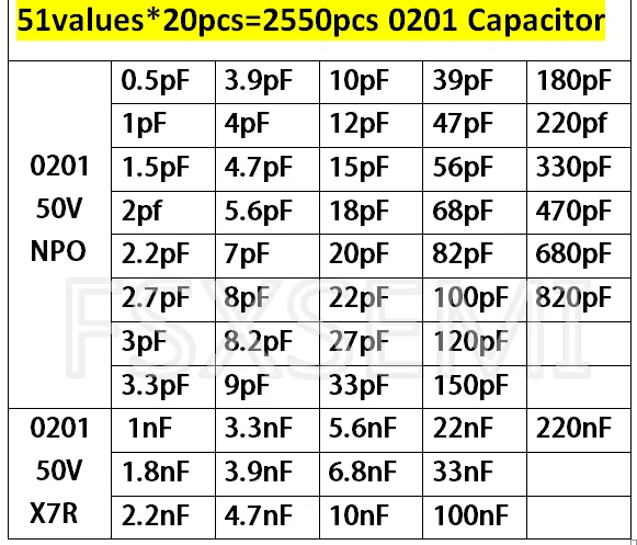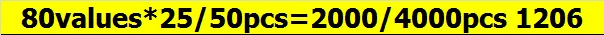 Сборник образцов конденсаторов 0201, 0402, 0603, 0805, 1206, 0,5пф ~ 10 мкФ, SMD чип-конденсаторы, набор 80/90/92 значений X50 шт., 25 шт.