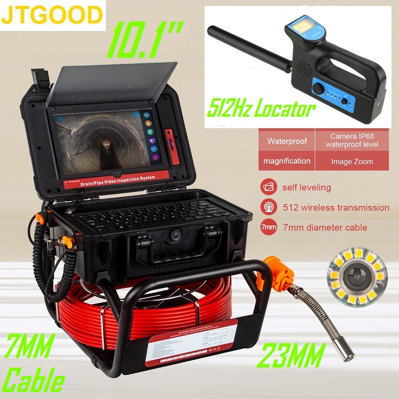 10,1-дюймовый сенсорный экран 7 мм счетчик кабельных счетчиков DVR самовыравнивающийся встроенный передатчик 512 Гц 23 мм камера для осмотра дренажной трубы и FM-приемник локатора 512 Гц