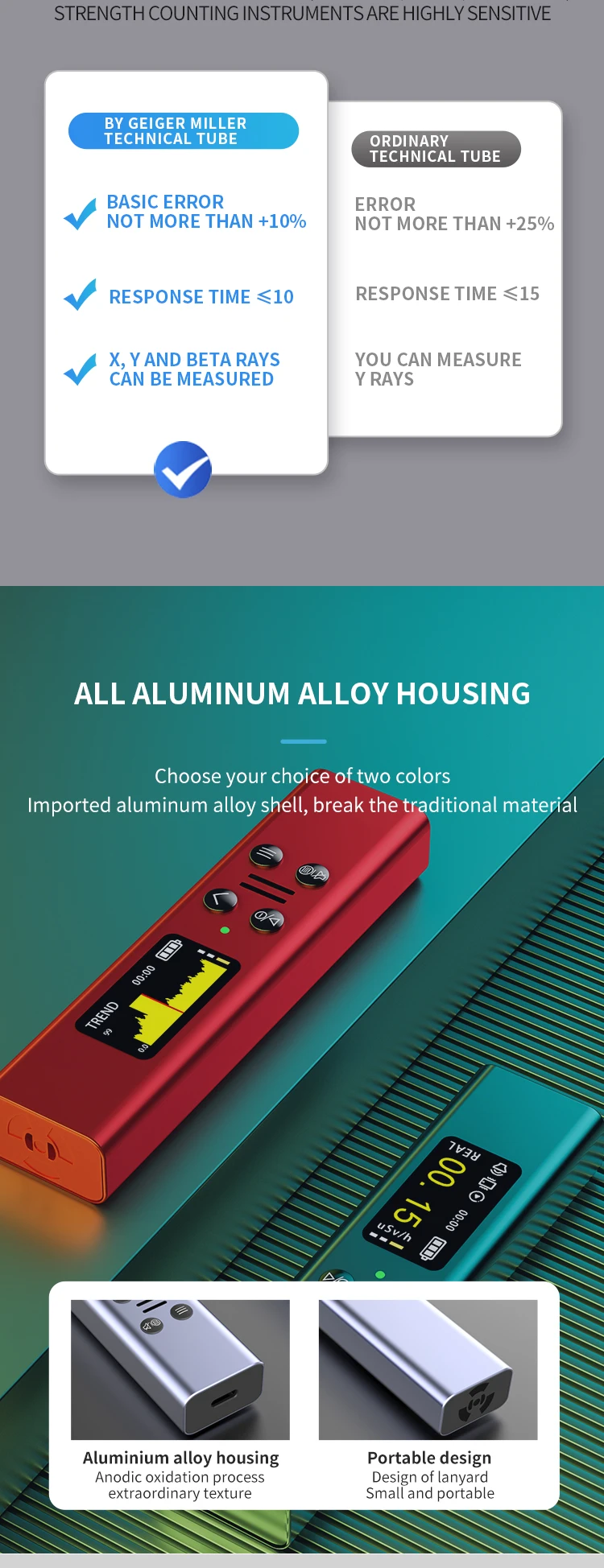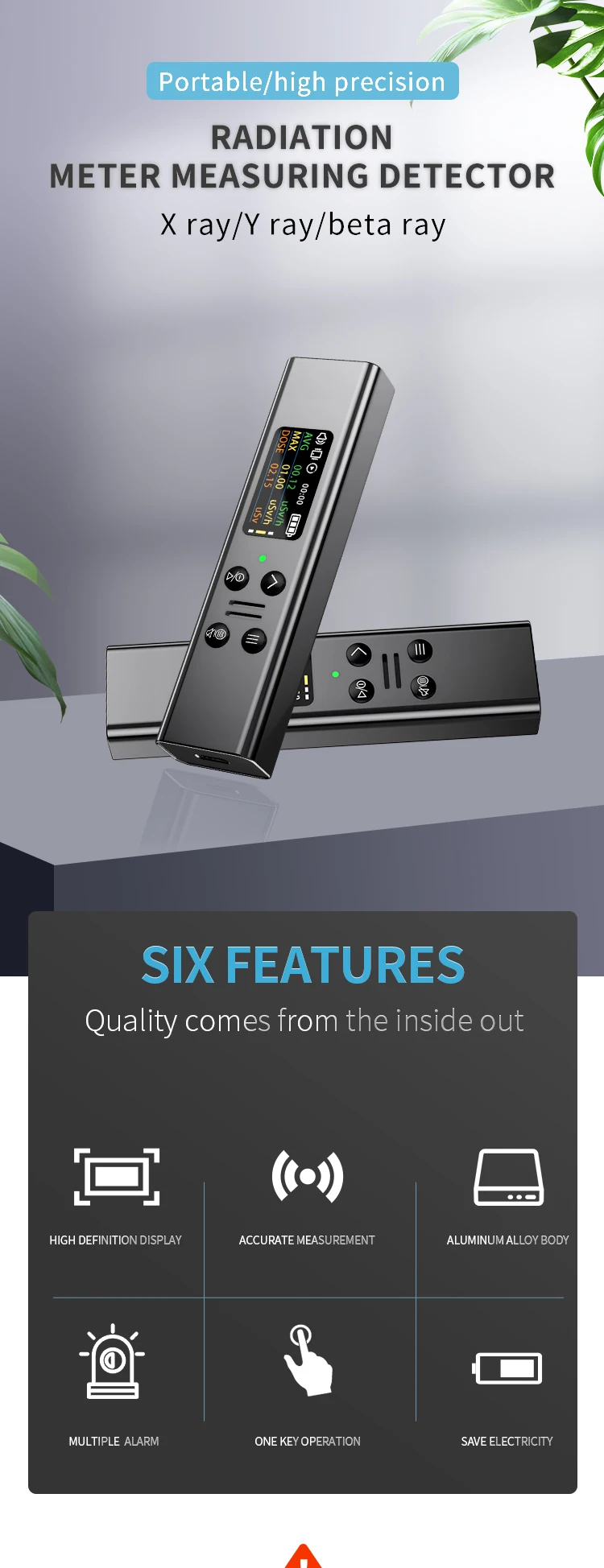 ЯДЕРНЫЙ РАДИАЦИОННЫЙ ДЕТЕКТОР-Детектор излучения использует профессиональный счетчик Гейгера и Счетную трубку GM с компенсацией энергии в качестве основного датчика для точного обнаружения бета-, гамма-и рентгеновских лучей. Высокая скорость обнаружения, сильная защита от помех, высокая чувствительность, широкий диапазон измерения и длительный срок службы. Дальность обнаружения: 0,08 мкЗв/ч ~ 9999 мкЗв/ч. Данные о дозе облучения обновляются в режиме реального времени в секунду.