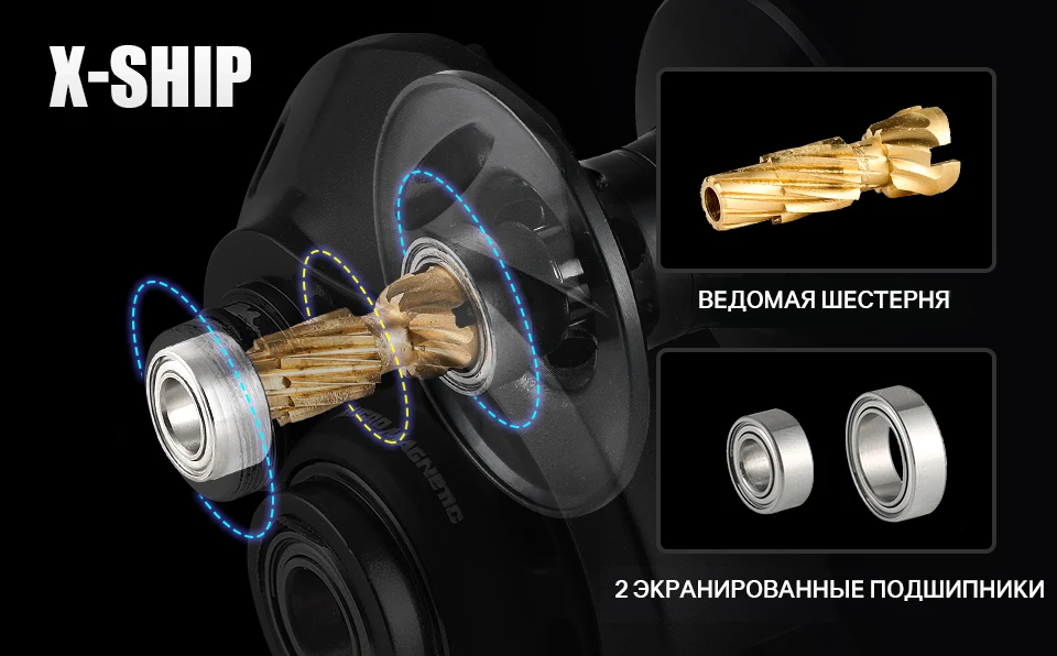 X-SHIP особая система строения привода обеспечивающая плавность работы, легкость и мощность конструкции при сильной нагрузке до 18 фунтов, длительный заброс без сума.