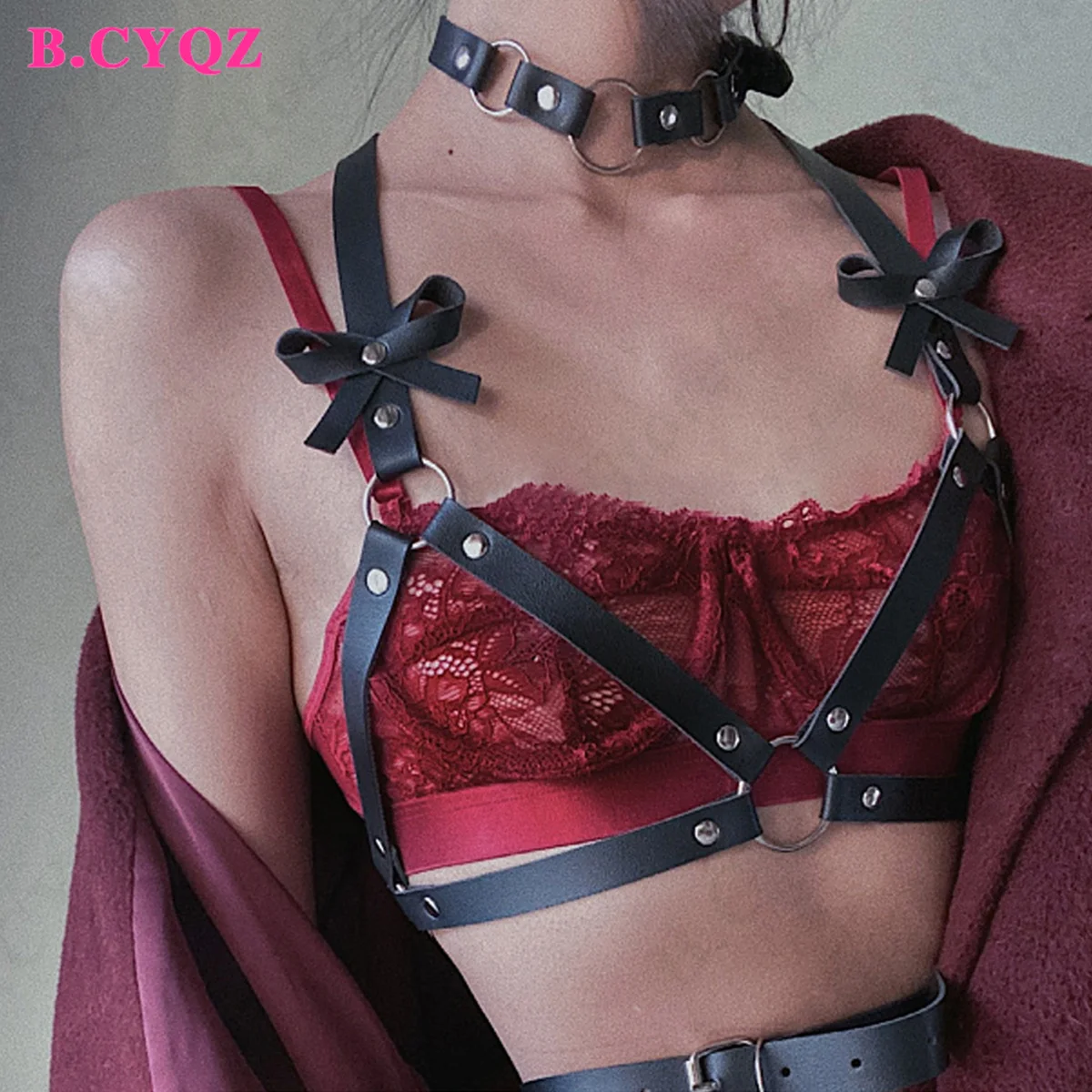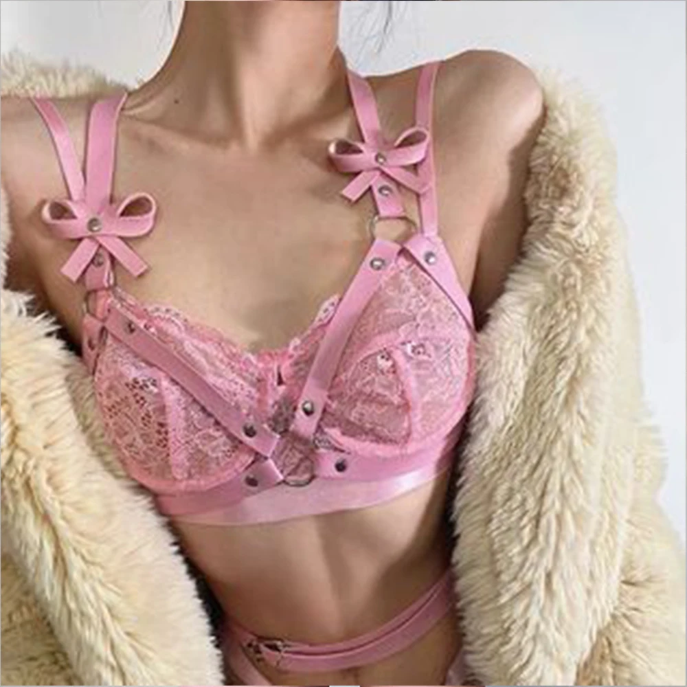 Сексуальный бондаж для тела, розовый бюстгальтер на бретельках, клетка, Готическая Подвязка из искусственной кожи, БДСМ, женское нижнее белье, боди, портупея, женская одежда