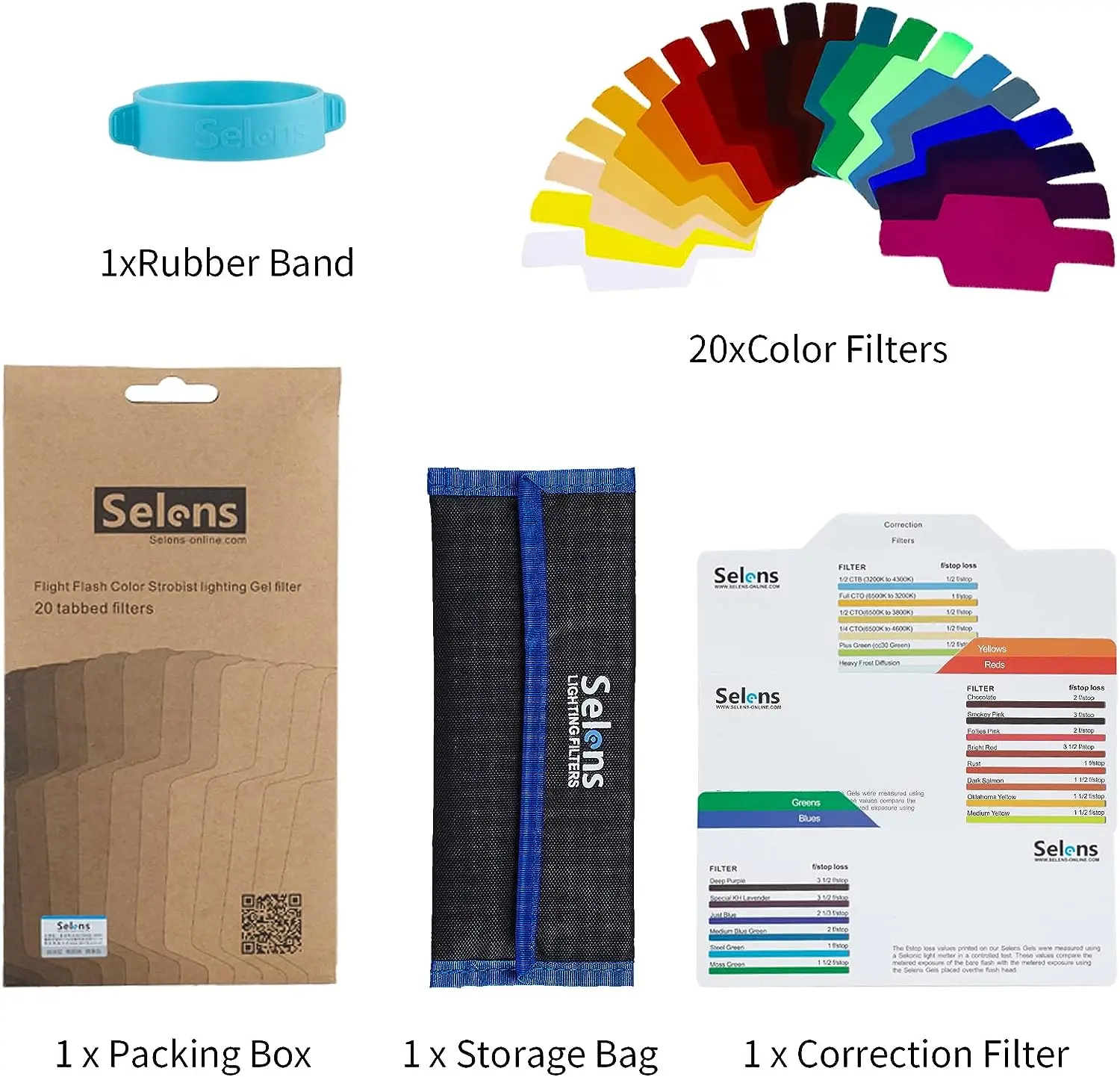 Включает 20 фильтров: предоставьте 20 листов осветительных гелей и сумку для хранения для создания потрясающих эффектов.