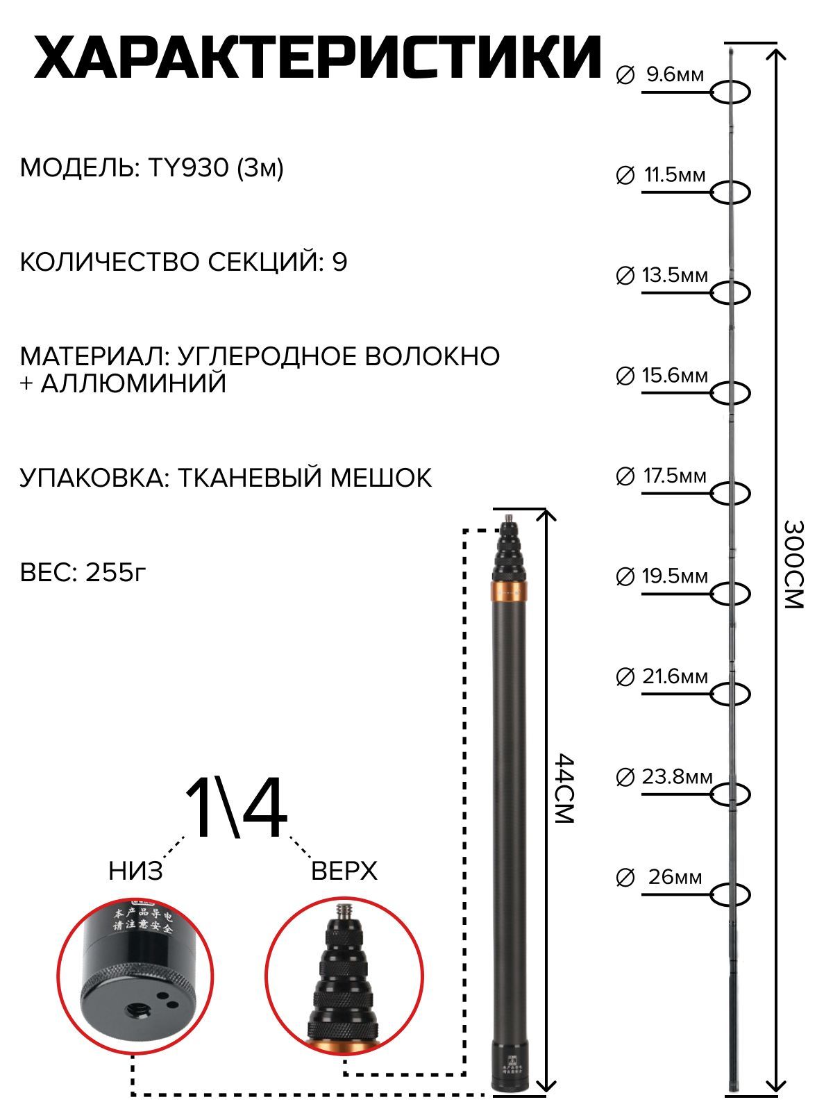 Селфи палка длина от 44 до 300 см.