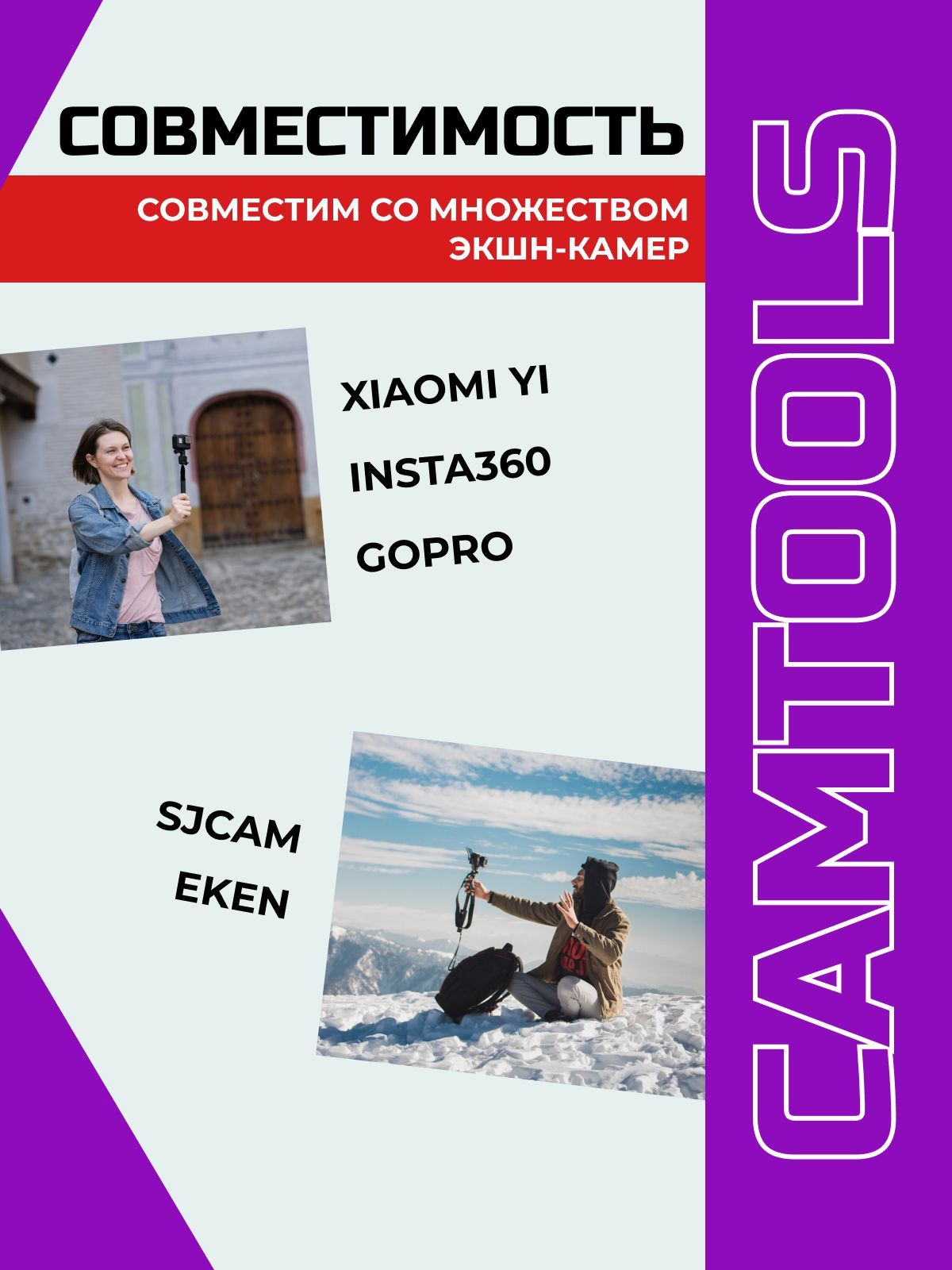 Совместимость с фотокамерами Xiaomi, Insta360, Eken, GoPro, SJCAM