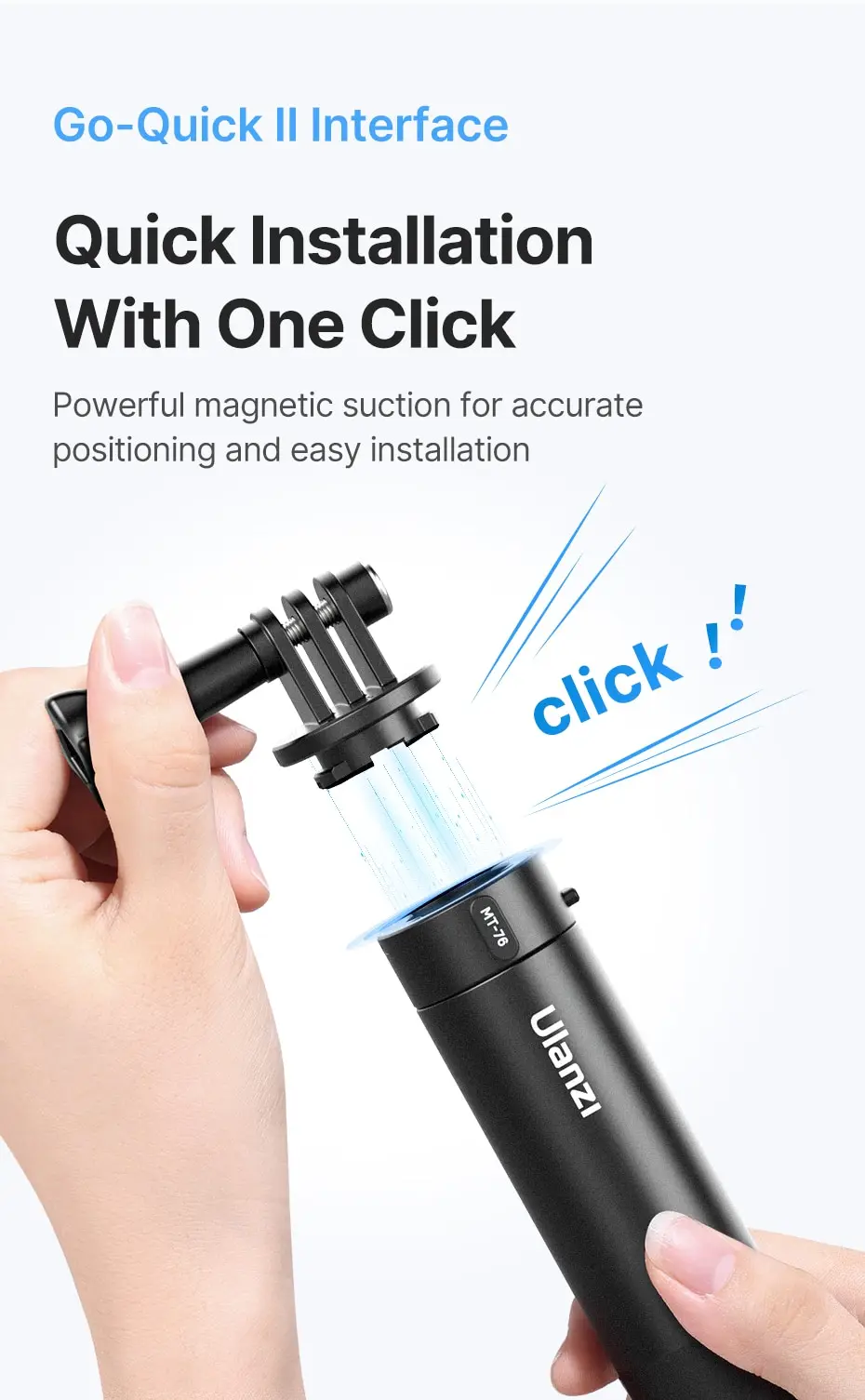 Селфи-палка Ulanzi Go-Quick II, 1,5 м, магнитное быстросъемное крепление для экшн-камеры Insta360