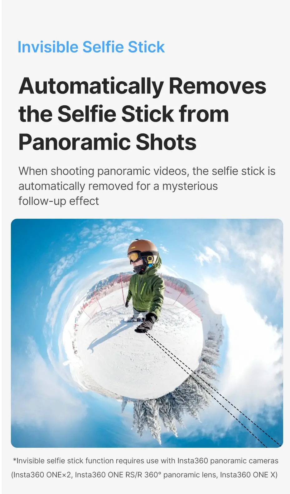 При съемке панорамного видео селфи-палка автоматически удаляется для получения загадочного эффекта наблюдения.