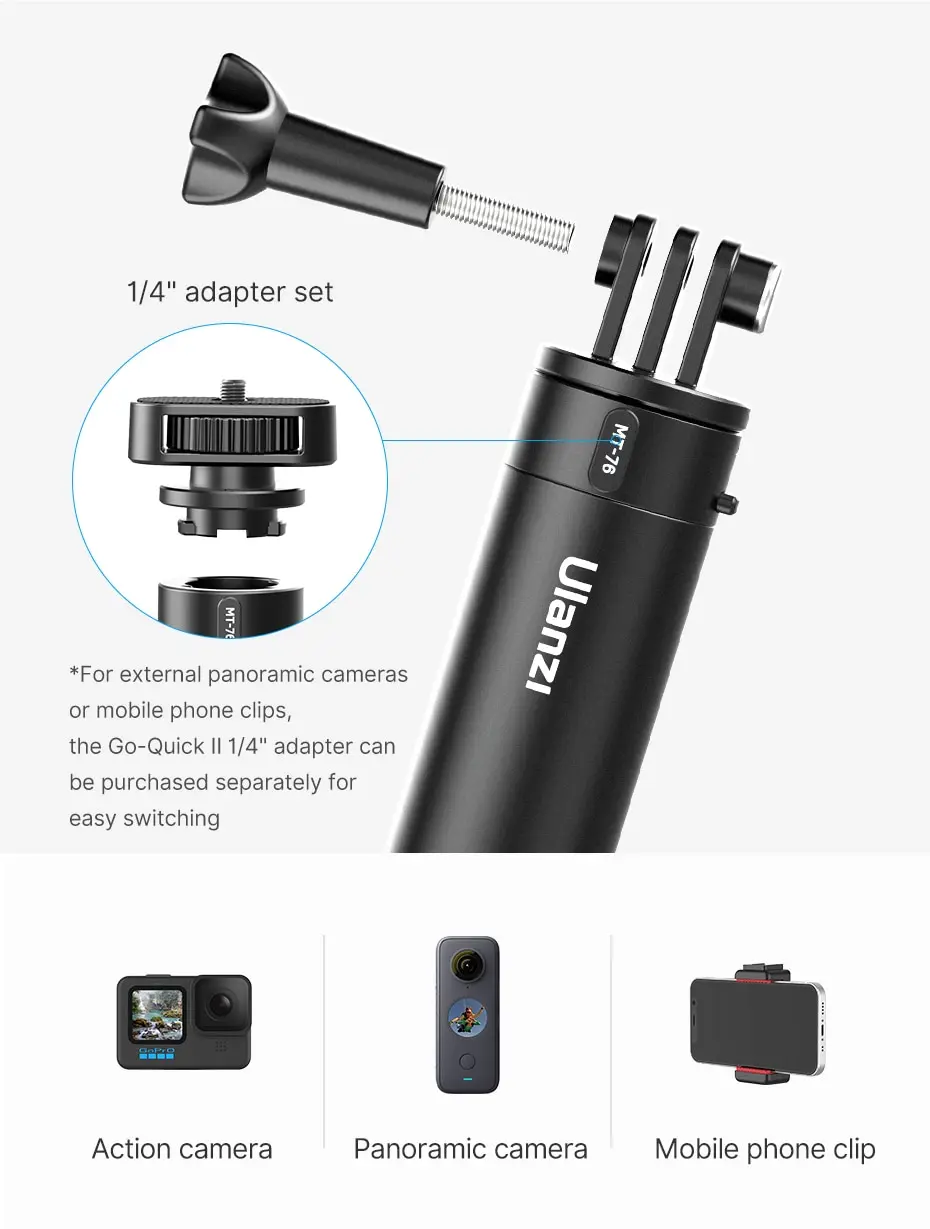 • Совместимость с несколькими устройствами: совместим с адаптером GoPro, панорамными камерами, экшн-камерами и зажимами для мобильных телефонов.