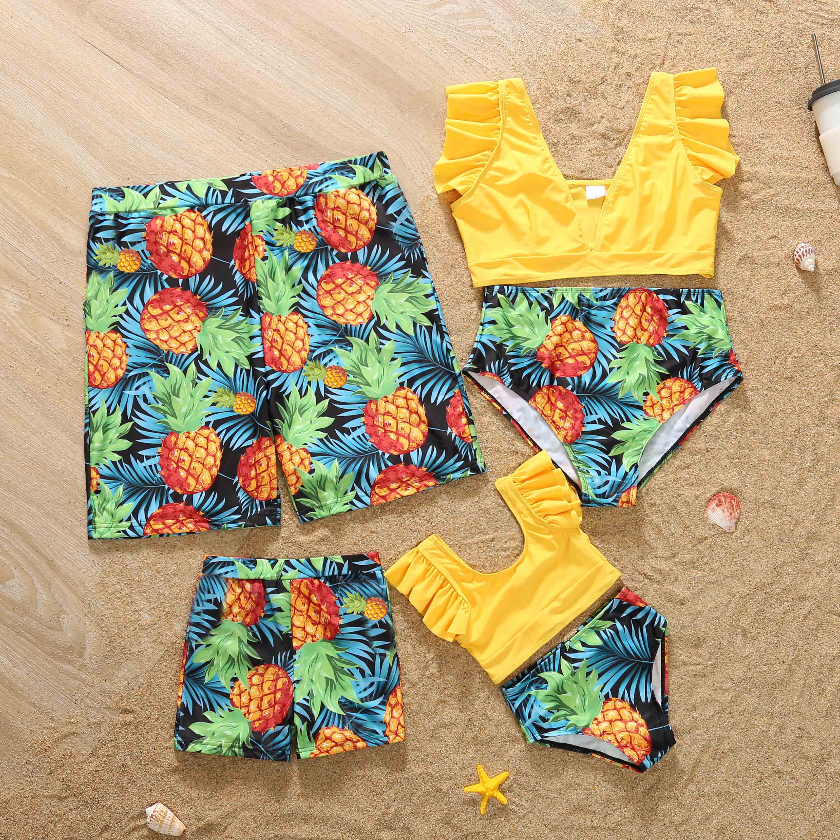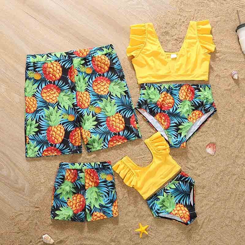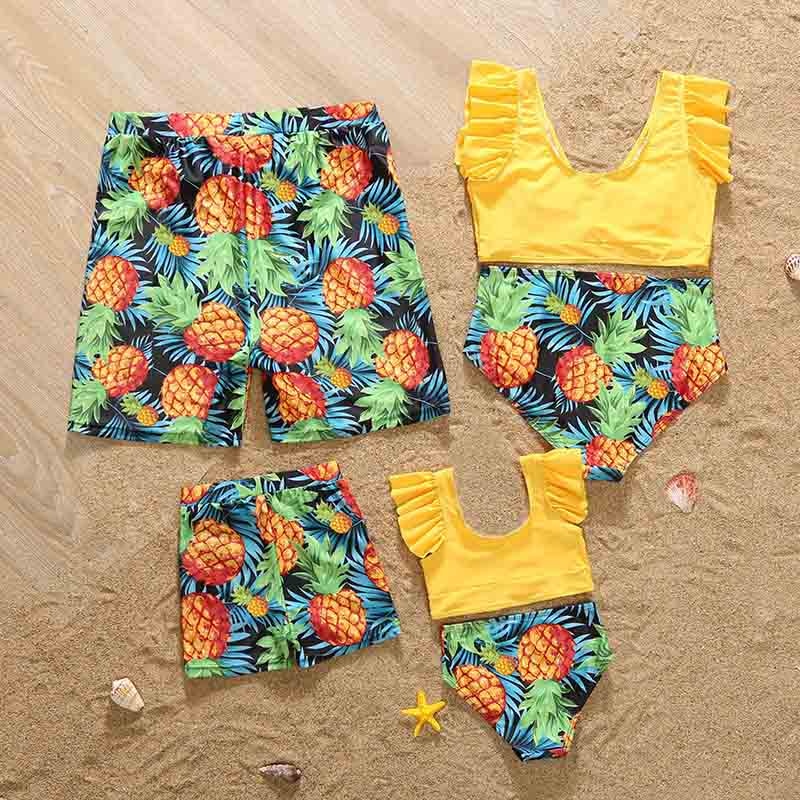 Одинаковые комплекты для семьи; Семейная одежда с принтом ананаса; Пляжный купальник для малышей; Одежда для мамы и папы, сына и дочки; Купальный костюм