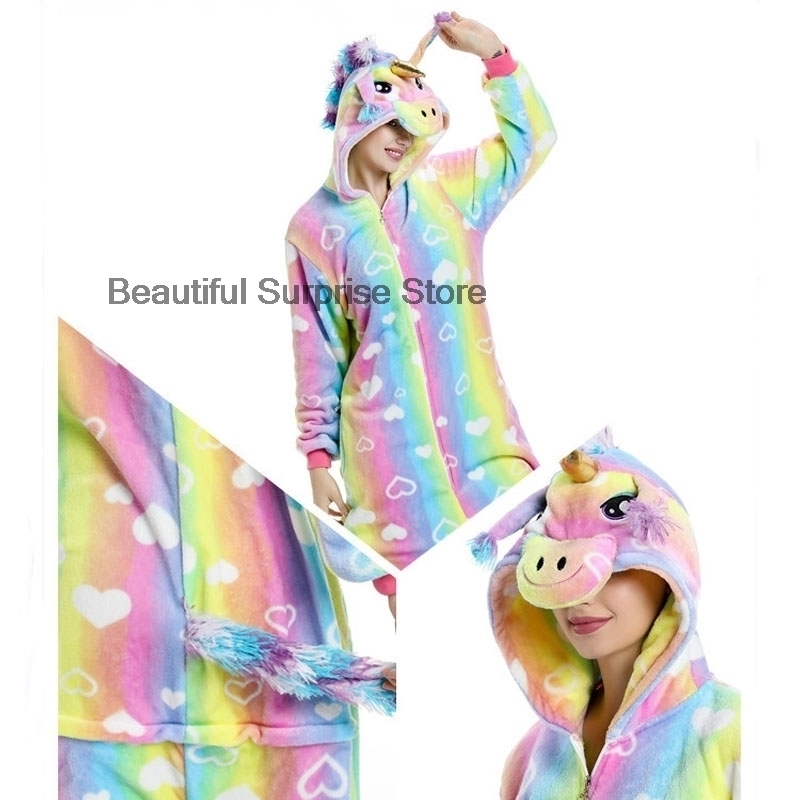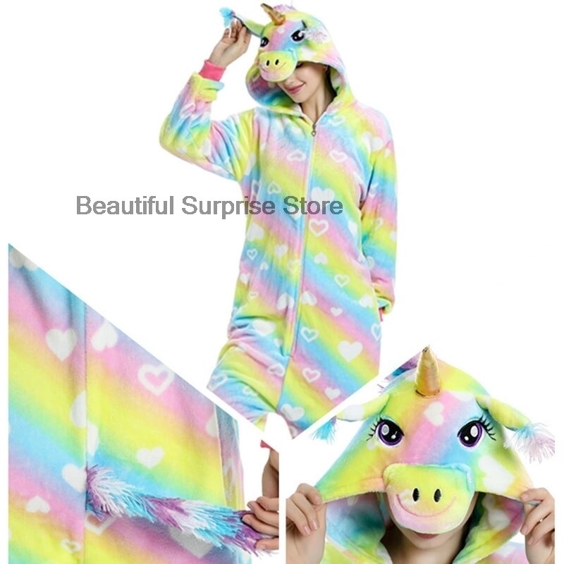 Семейные рождественские пижамы, Кигуруми для взрослых, комбинезон с единорогом, пижамы с животными, зимняя флисовая одежда для сна для взрослых, мультяшный костюм на Хэллоуин