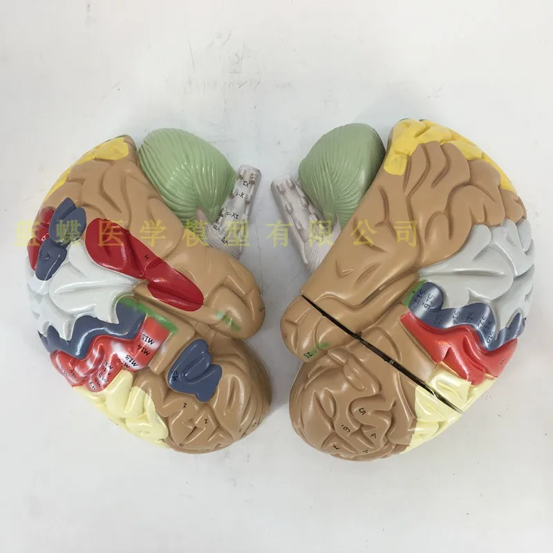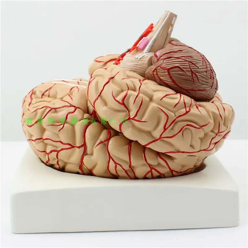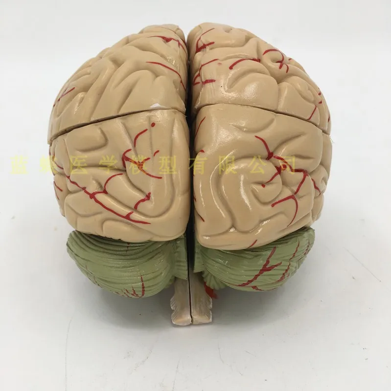 Особенности: Модель состоит из девяти компонентов: сагиттального отдела мозга, полушария головного мозга, мозжечка и ствола мозга. Он также показывает структуру полушария мозга, промежуточного мозга, мозжечка и ствола мозга, Понса, мозга и мозга. Есть 41 индикатор местоположения. Размер: натуральный размер, высота 13,5 см, ширина 12,5 см, глубина 16 см