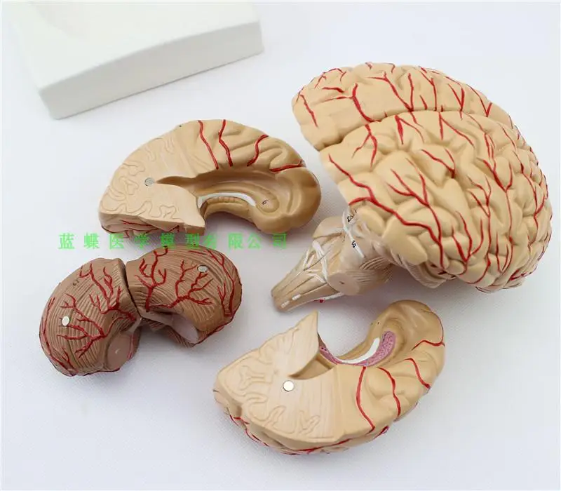Особенности: Модель состоит из восьми компонентов: сагиттального отдела мозга, полушария головного мозга, мозжечка и ствола мозга. Он также показывает структуру полушария головного мозга, промежуточного мозга, мозжечка и ствола мозга, Понса, мозгового мозга и мозга, без цифровой идентификации.