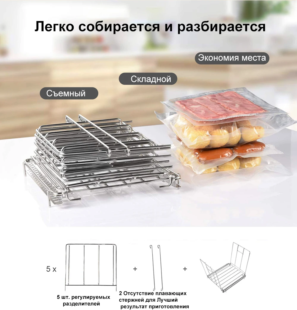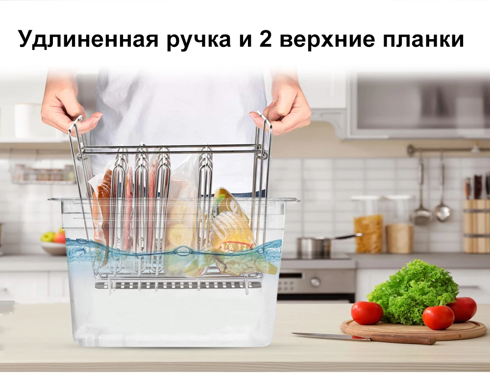 • Удобный для пользователя: Удлиненная ручка позволяет легко поднять и снять стойку sous vide, не касаясь горячей воды, а стойка также полностью Складная для удобного хранения.