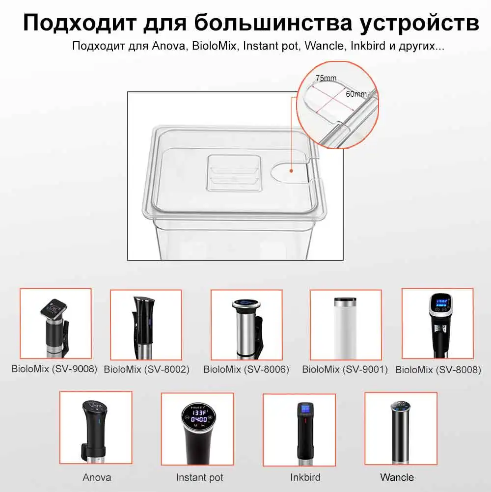 • Универсальный дизайн: Biolomix sous vide аксессуары используется для хранения, маринования, сжатия и приготовления пищи с самыми популярными брендами 11 л sous vide контейнеров/ведра.