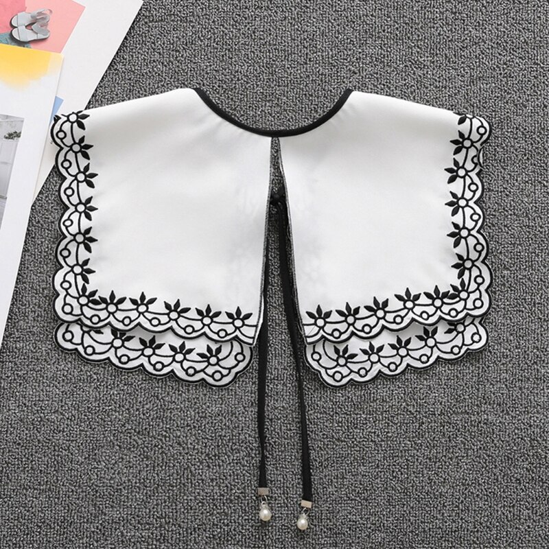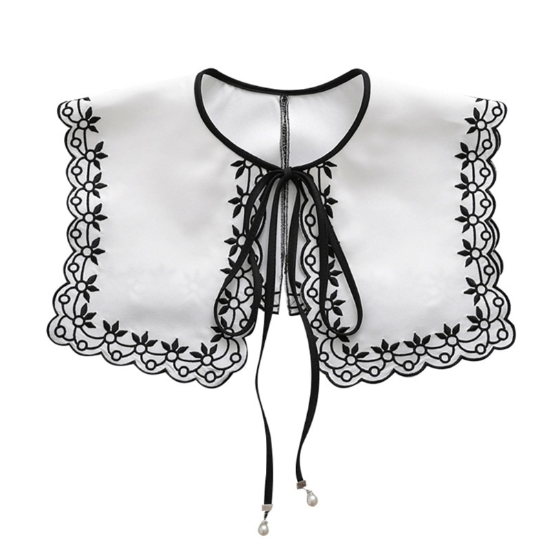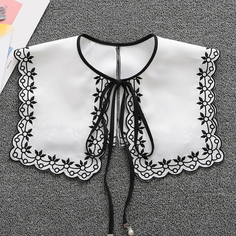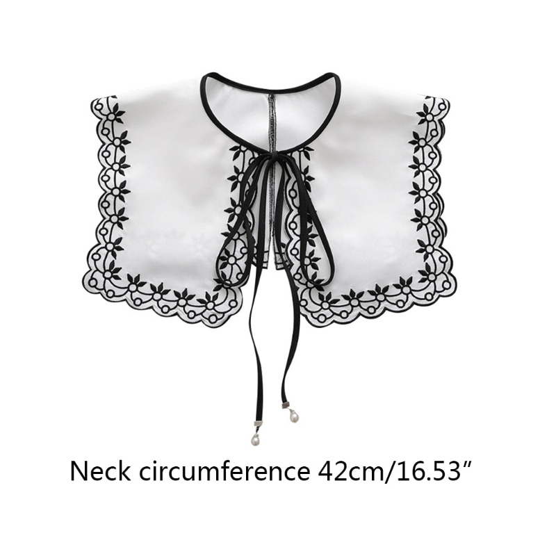 Съемный ложный воротник, милая лента с цветочной вышивкой и бантом, ожерелье, шаль