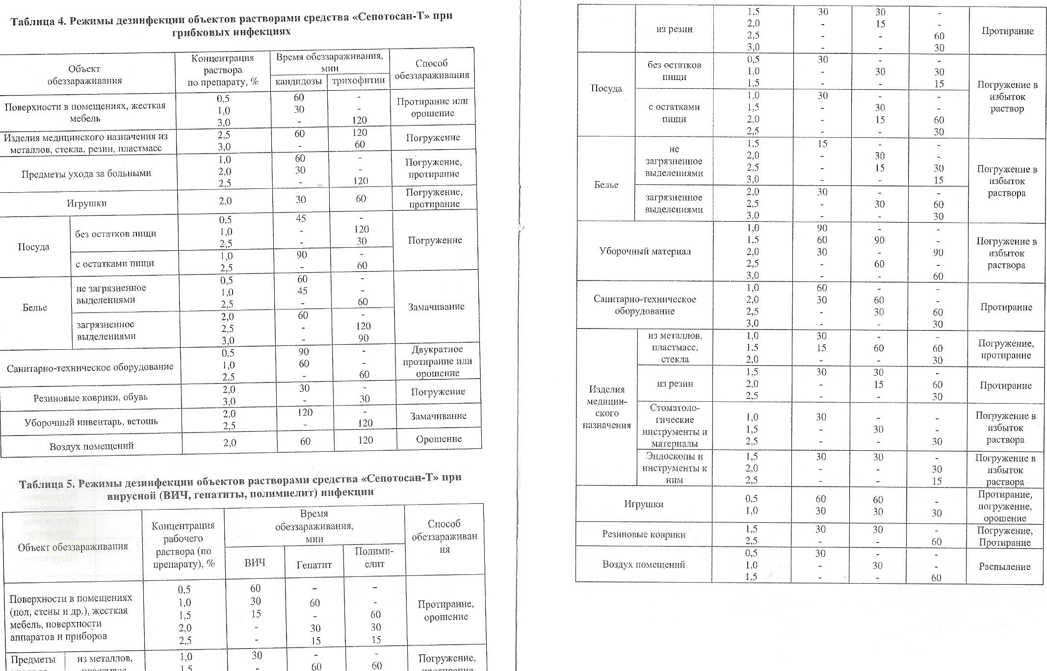 • дезинфекция и мытье поверхностей в помещениях, жесткой мебели, предметов обстановки, поверхностей аппаратов, приборов, санитарно-технического оборудования, белья, посуды (в том числе лабораторной), предметов для мытья посуды, резиновых ковриков, уборочного материала, игрушек, предметов ухода за больными в ЛПУ (включая клинические, диагностические и бактериологические лаборатории, отделения неонтологии, роддома, палаты новорожденных), в детских и пенитенциарных учреждениях, в инфекционных очагах при проведении текущей, заключительной и профилактической дезинфекции;