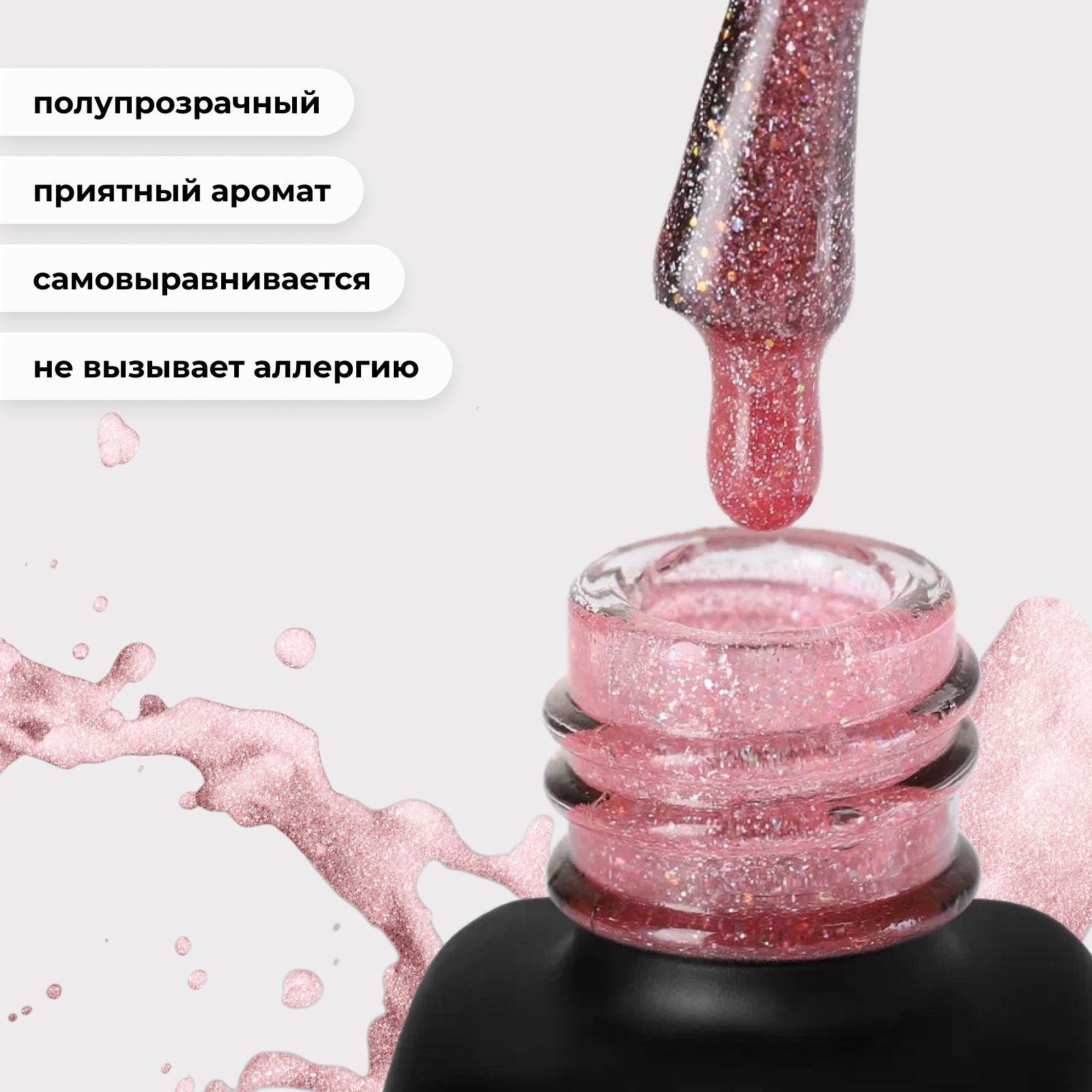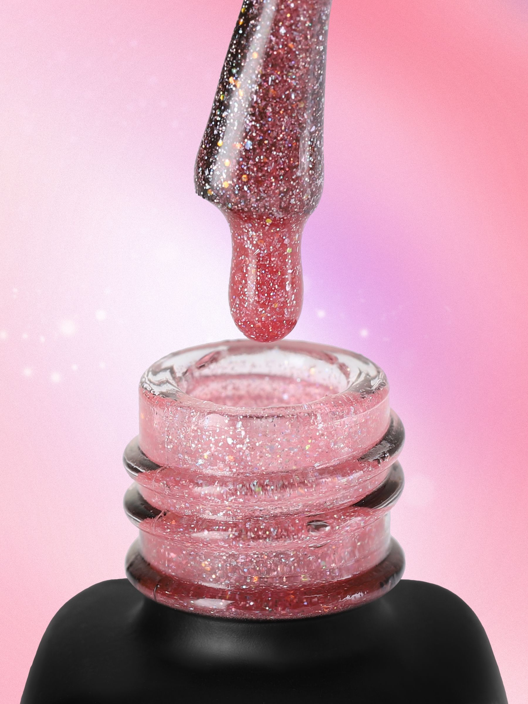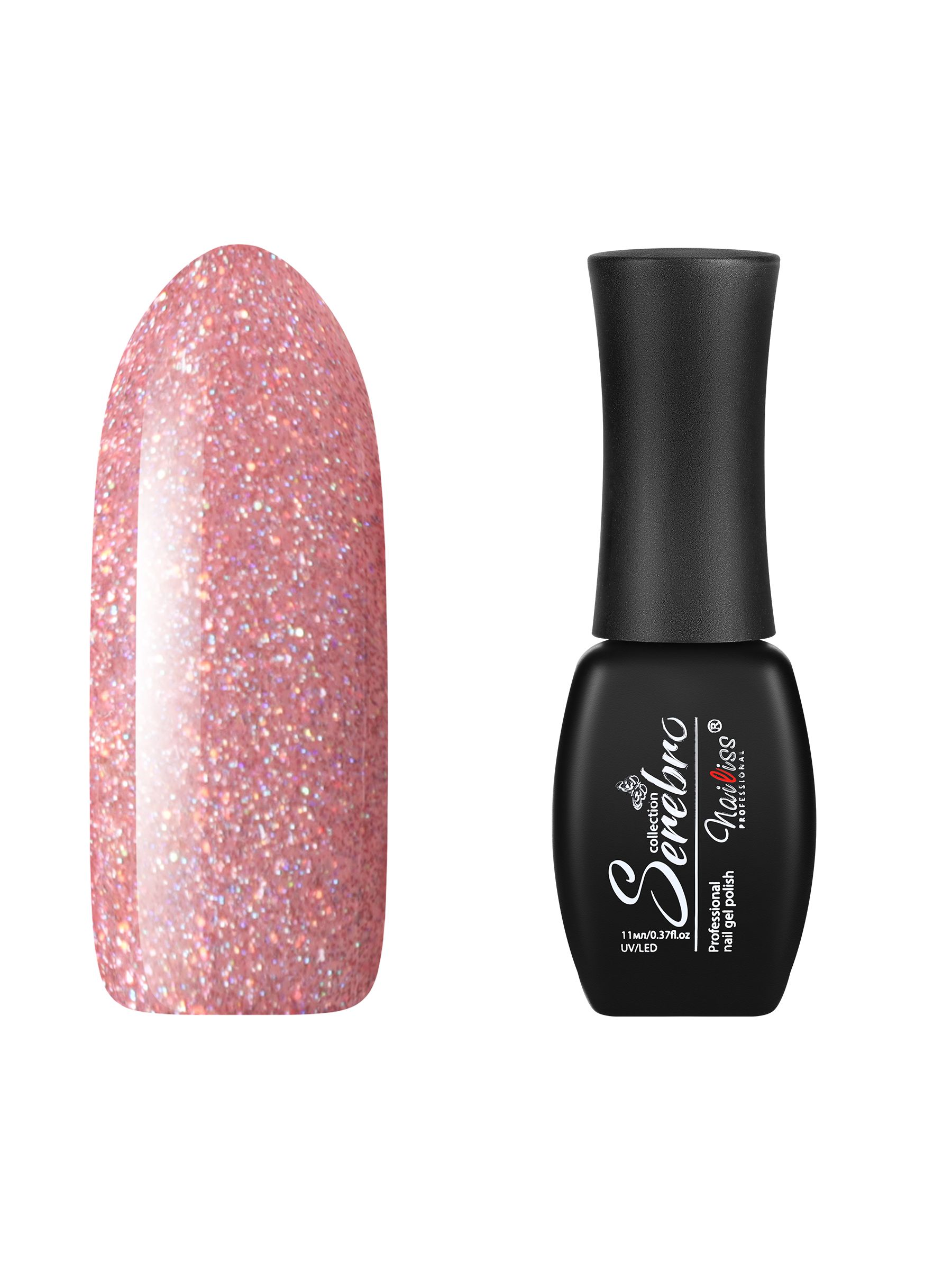 Serebro Гель лак для ногтей с блестками "Иллюзия" голографический полупрозрачный гипоаллергенный, декоративное покрытие для маникюра и педикюра, розовый, 11 мл