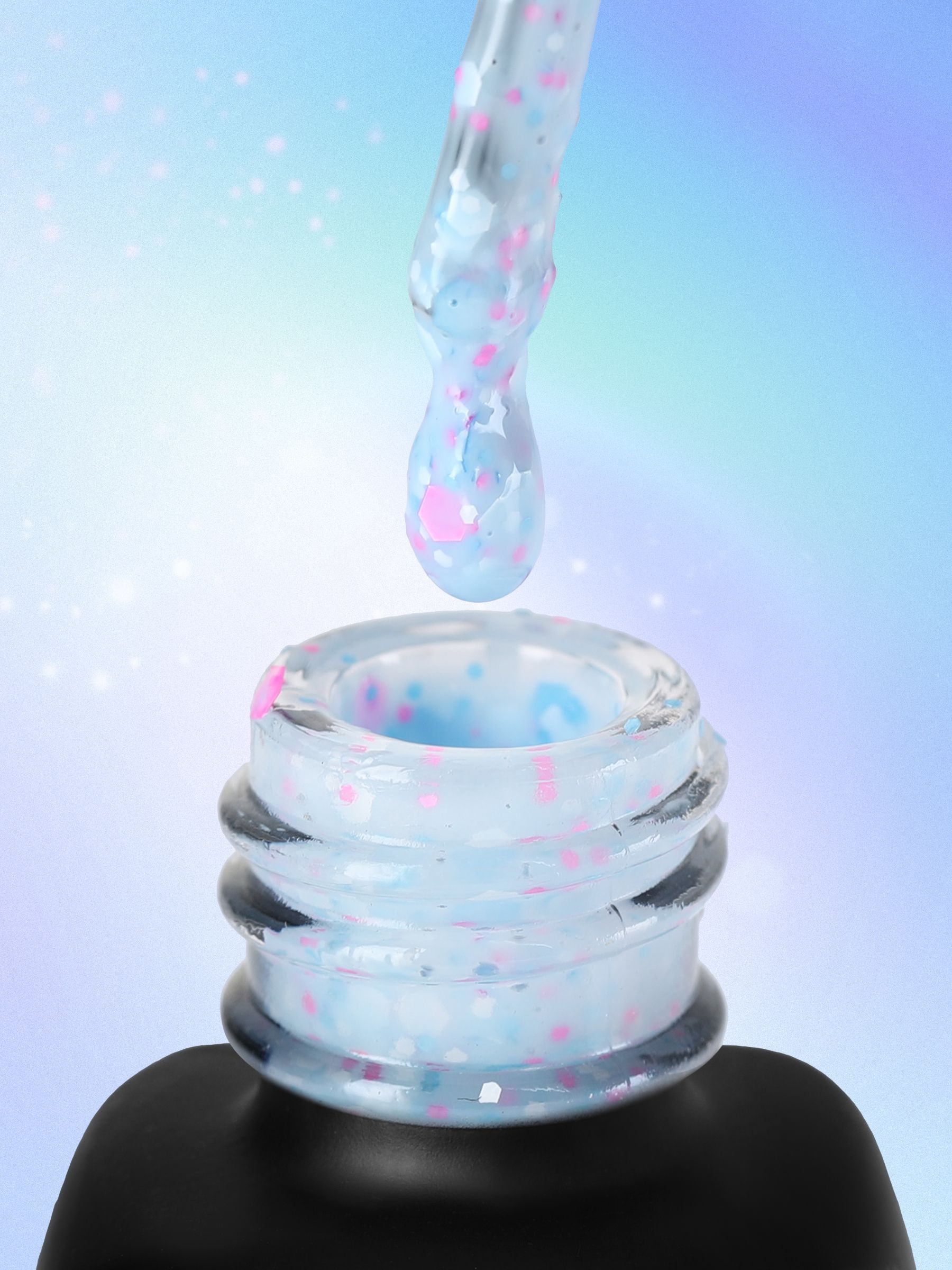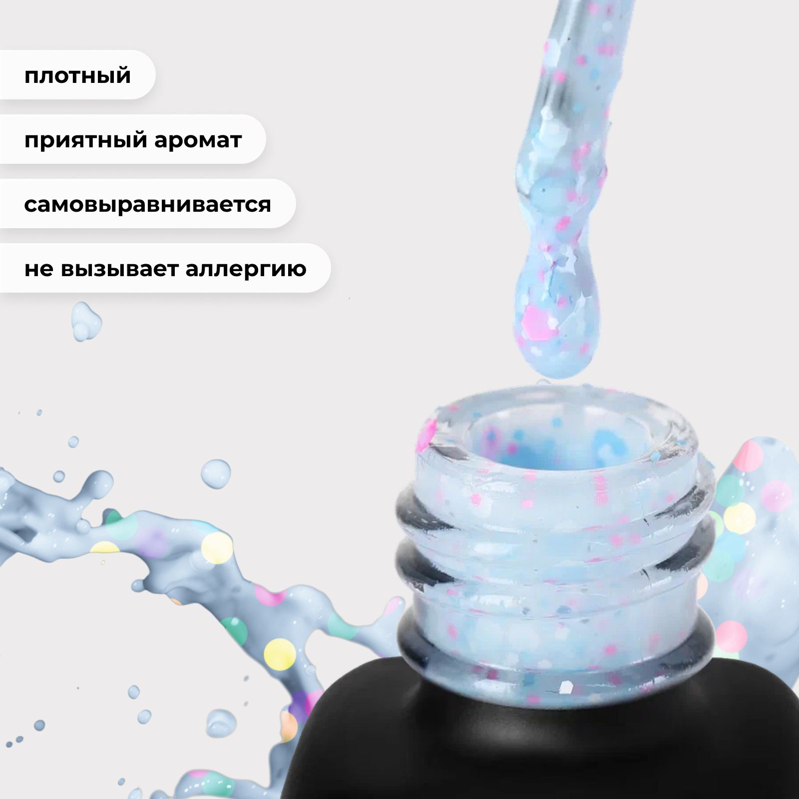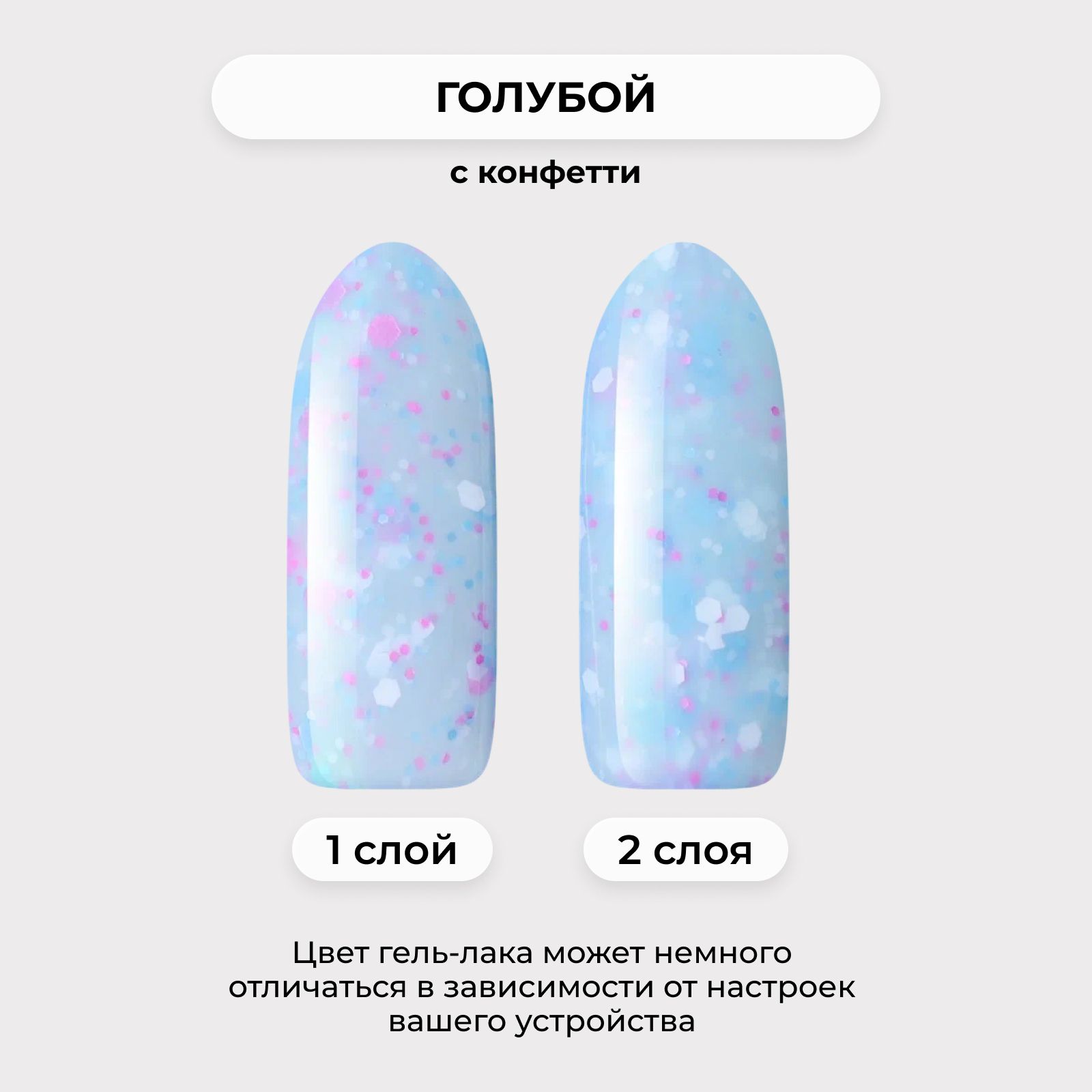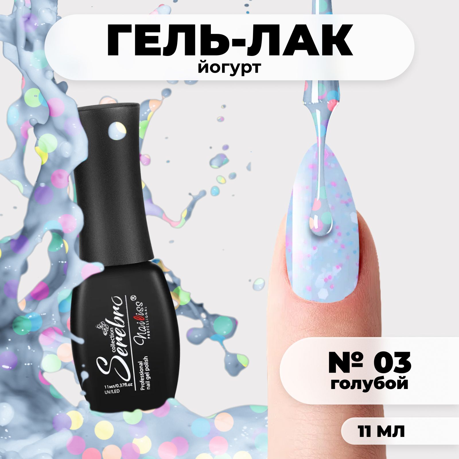 Serebro Гель лак для ногтей с конфетти "Йогурт", гипоаллергенный плотный насыщенный, декоративное покрытие и цветные хлопья для маникюра и педикюра, голубой, 11 мл