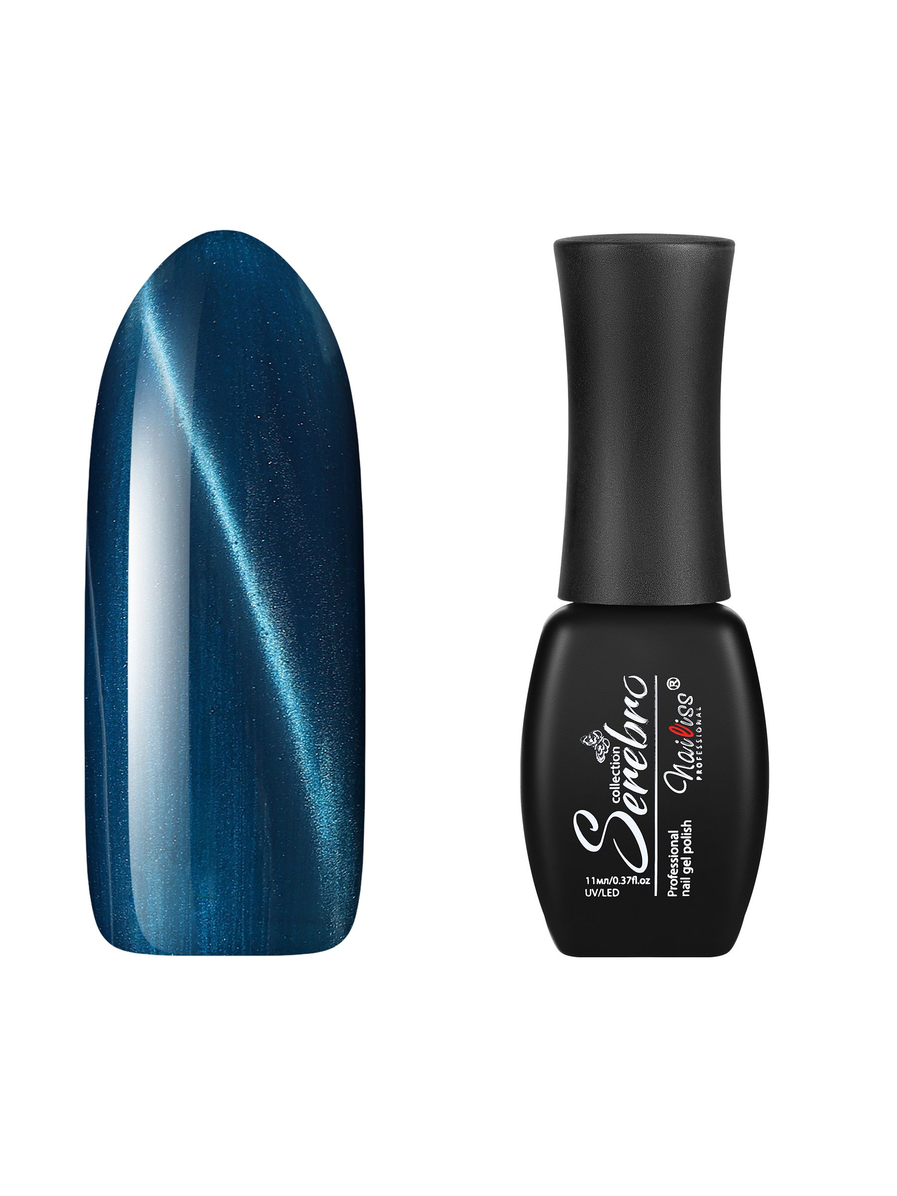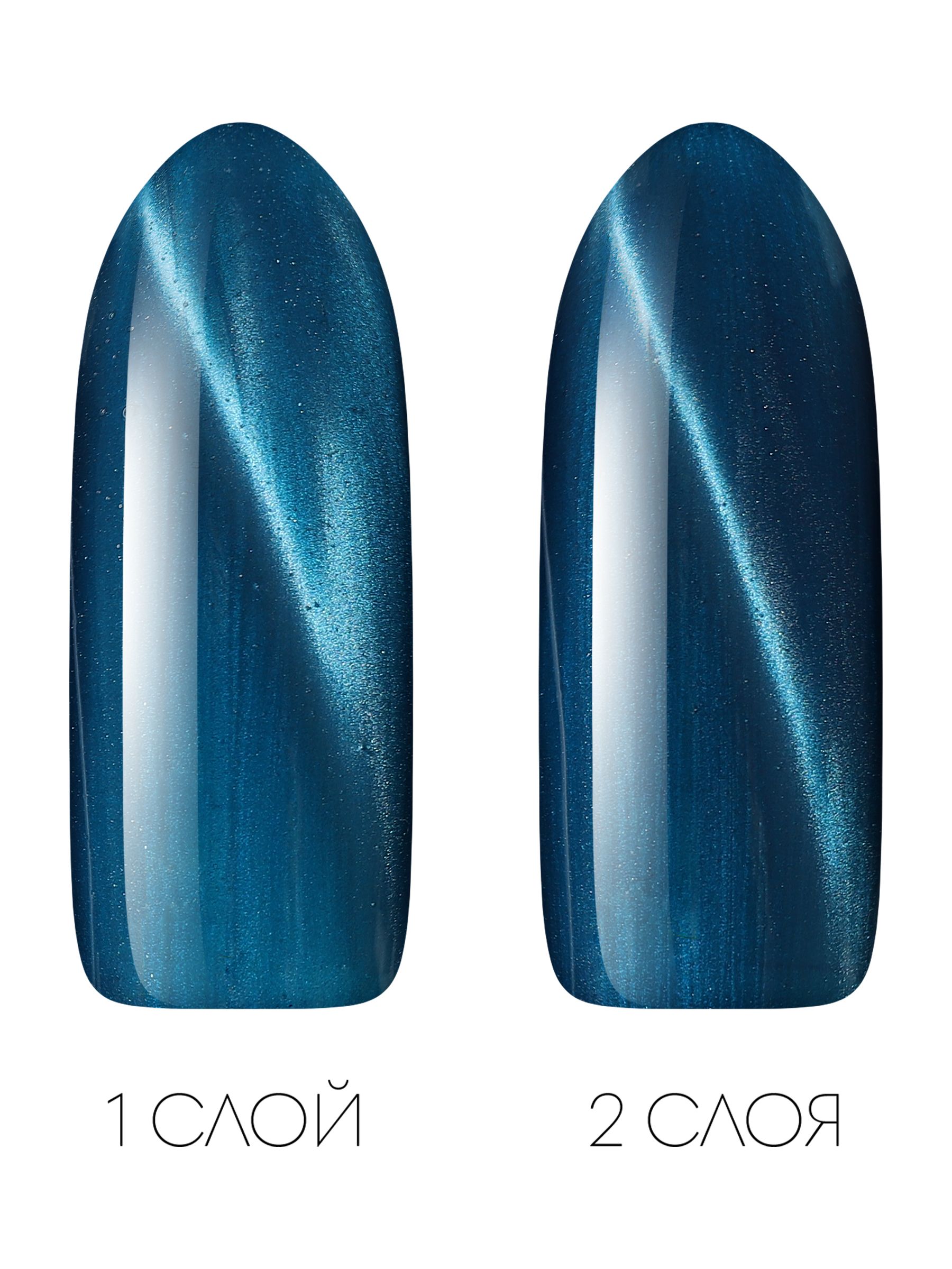 Serebro Гель лак для ногтей с перламутром "Кошачий глаз LUX", магнитный гипоаллергенный плотный насыщенный, декоративное покрытие для маникюра и педикюра, голубой, 11 мл