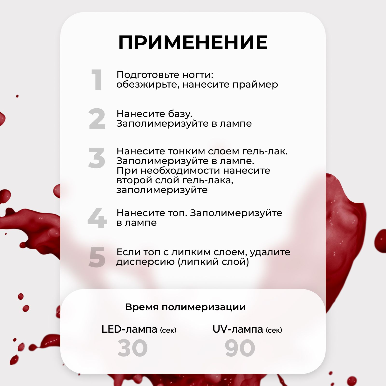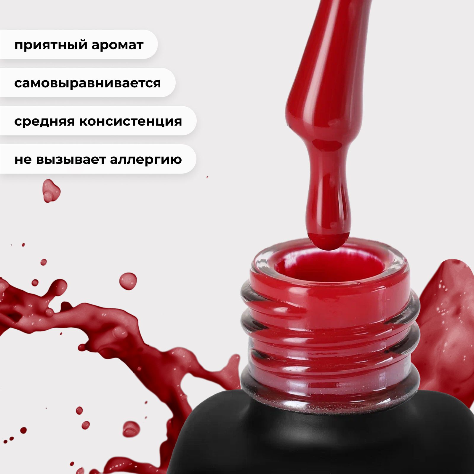 Serebro Гель лак для ногтей "Сангрия" плотный гипоаллергенный насыщенный, декоративное покрытие для маникюра и педикюра, темный красный, 11 мл