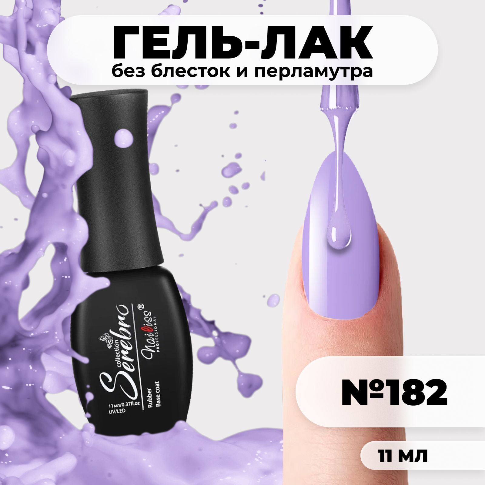 Serebro Гель лак для ногтей "Сиреневая фиалка" плотный гипоаллергенный насыщенный, декоративное покрытие для маникюра и педикюра, светлый фиолетовый, 11 мл