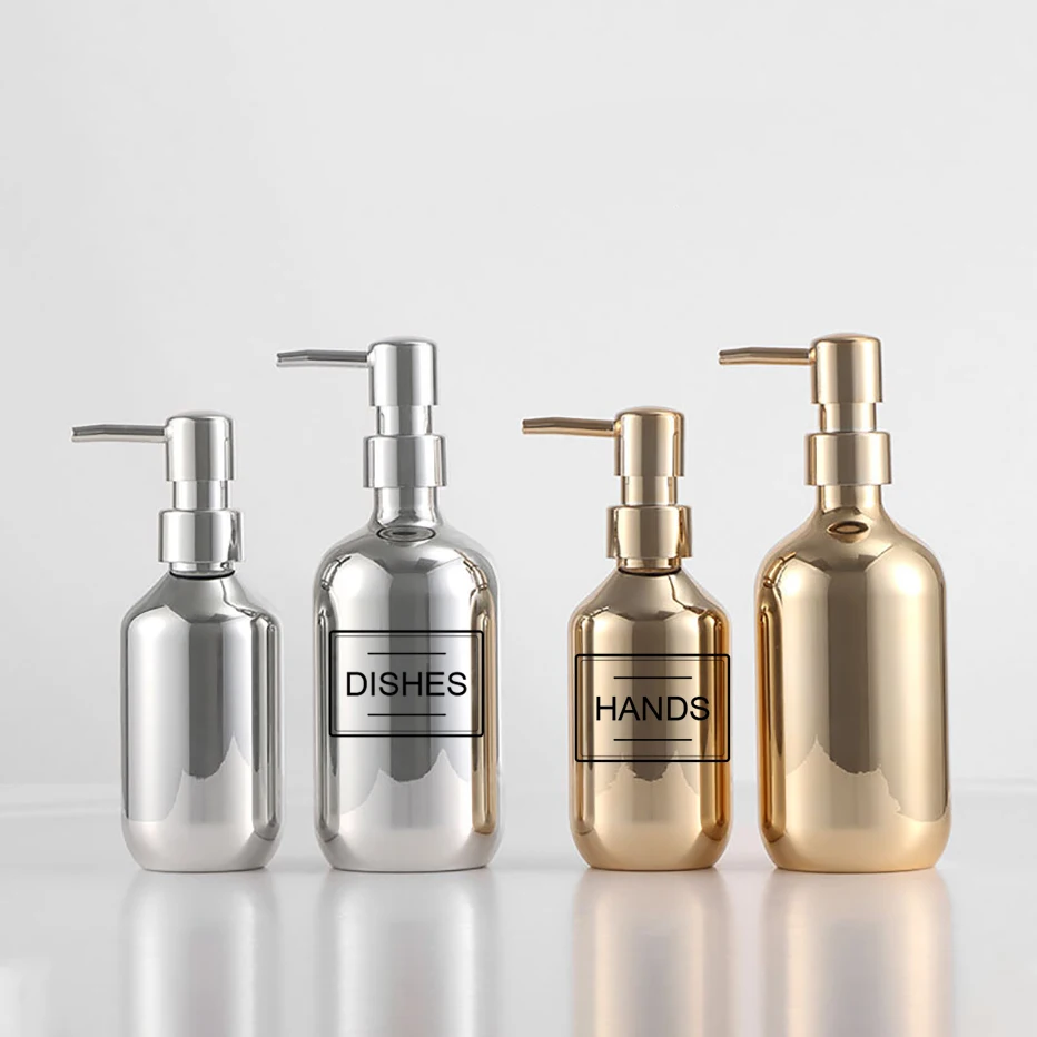 Серебряный золотой флакон с помпой бутылка электроplatingsoap диспенсер современный сияющий лосьон посуда жидкий контейнер ванная комната кухня украшение