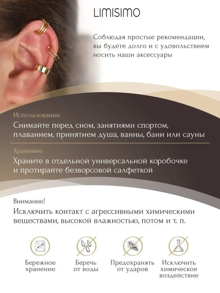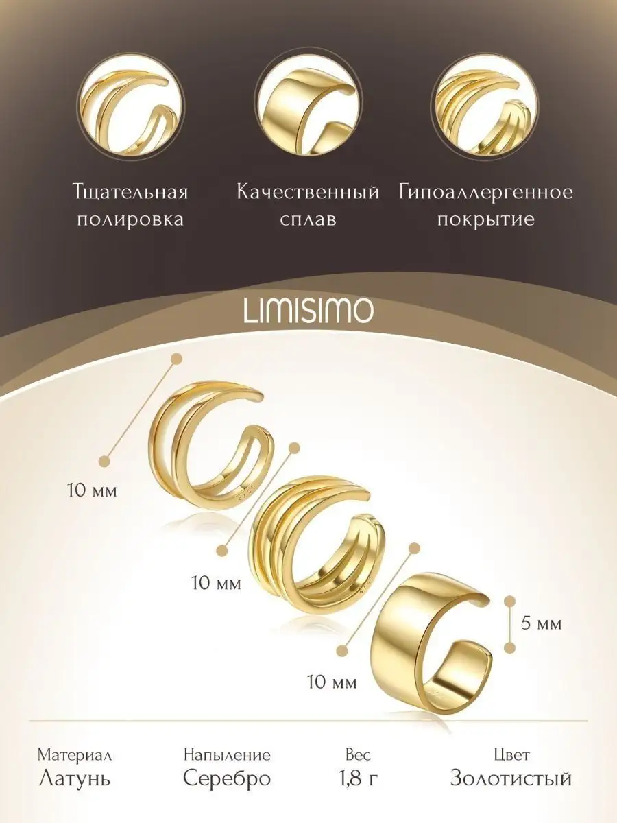 Описание: Привет! Позволь мне представить тебе невероятный набор кафф - идеальный выбор для стильных девушек и молодых модниц. Серьги бижутерия каффы представлены в наборе 3 шт. Каффы имеют размеры 13 на 5 мм и вес 1,4 г. Если ты ищешь стильные серьги, которые добавят тебе изюминку и подчеркнут вашу уникальность, то сережки-каффы именно то, что тебе нужно. Эти нежные каффы без прокола безопасные для кожи и прочные. Серьги бижутерные из набора можно носить как обычные сережки, так и использовать в качестве клипс на уши. Серьги каффы также идеально подходят для тех, кто не хочет делать настоящий прокол хряща. Сережки женские подойдут как для подростков, так и для взрослых женщин. Они добавят свежести и индивидуальности твоему образу, подчеркнув твой стиль и неподвластность стереотипам. Каффы серебро выполнены в винтажном и нежном дизайне, который так популярен в линии бижутерии корейских брендов. Это не только аксессуары, но и настоящие произведения искусства, которые ты сможешь носить и демонстрировать с гордостью. Набор сережек - это точно то, чего тебе не хватает в твоей коллекции украшений. Не упусти шанс сделать свой образ неповторимым и запоминающимся с этим удивительным набором женских сережек.