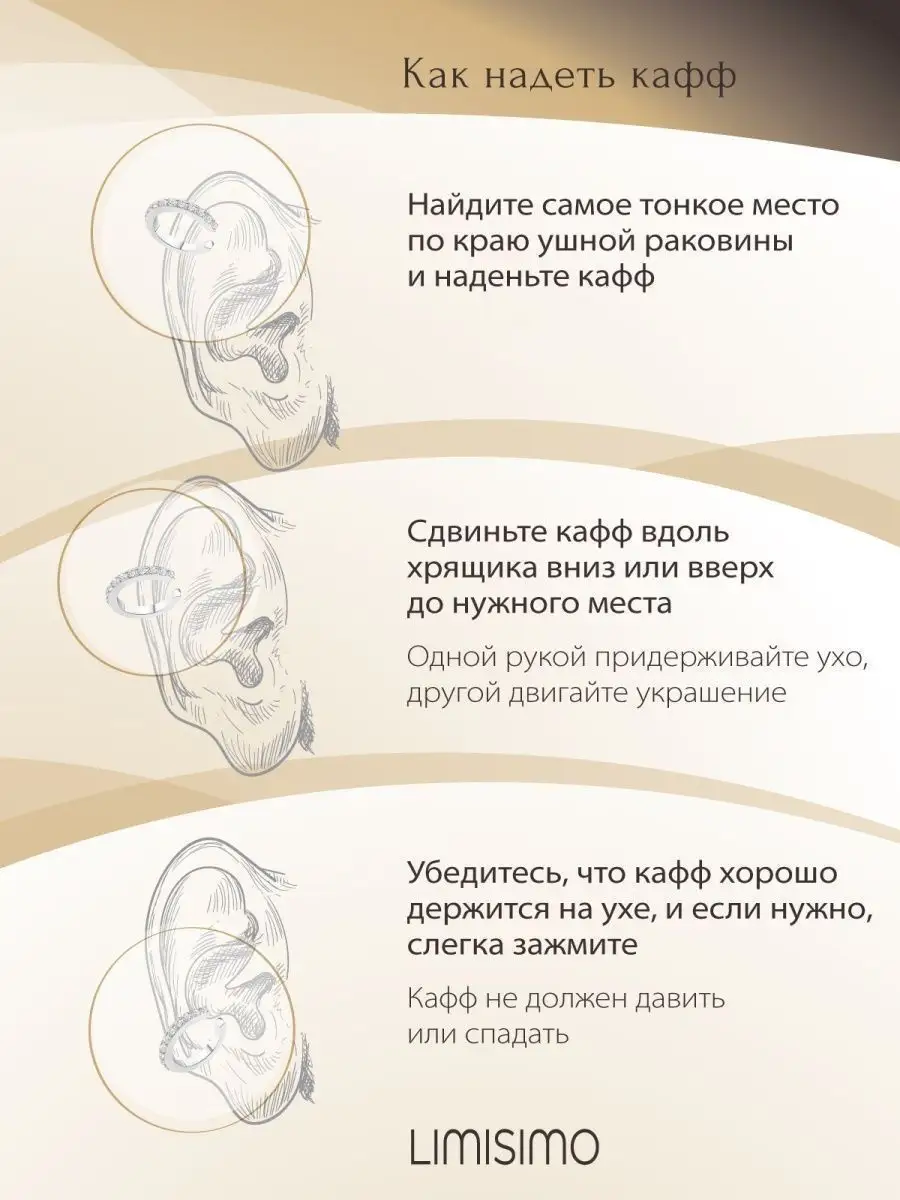 Описание: Каффа женская представляет собой украшение, которое можно использовать не делая прокол ушей. В комплекте 1 кафа на ухо размером 7 на 11 мм. Кафа весит всего 1,8 г. Украшения ювелирные изготовлены из гипоаллергенного бижутерного сплава, в ассортименте есть разные цвета: каффы золото а также кафа на ухо, похожая на серьги женские серебро. Приобретая каффы набор как клипсы на уши, вы получаете вечерние украшения для женщины с идеальной полировкой и полностью безопасные, без камней, как серьги из медицинской стали. Надежный зажим как застежка, тщательная полировка делают серьги женские бижутерия комфортными в повседневной носке. Каффа заменит ювелирные украшения, ведь бижутерия аксессуары доступны по цене и не требуют дополнительного прокола. Серьги трансформеры используют одновременно как разные украшения: моносерьга или серьги для девочек. Ювелирная бижутерия со стразами заменяет серьги золотые и даже сережки клевер, а также серьги серебро 925, потому что кафф выглядит так же изысканно, как серебряные серьги. Каффы можно носить как сережки для девочек в школу, поскольку серьги для девочек подходят даже подросткам, у которых еще не проколоты уши. Бижутерия женская серьги нравится всем без исключения: кафа на ухо серебро невесома и практична для повседневной жизни. Серьги каффы бижутерия следует беречь от воды, снимать перед водными процедурами и протирать чистой сухой салфеткой, используя средство для очищения. Каффы набор прослужит вам долго, если вы будете соблюдать правила ношения и рекомендации по эксплуатации. Каффы золото можно носить поодиночке или приобрести 2 шт, чтобы серьги каффы золото были парным комплектом. Такие многослойные украшения, как кафа серьги можно носить даже несколько штук на одном ухе. Женские серьги прочно держатся, не спадают и не цепляются за одежду, поэтому каффа идеально подходит девушке и женщине с любой прической, а также для подростков и даже мужчинам. Каффы как безопасные клипсы для ушей, заменяют серьги серебряные и пирсинг, а также серьги из медицинского сплава. Каффа смотрится элегантно и привлекательно. Клипса на ухо, благодаря своей простоте и стилю, выглядит лучше, чем разные дорогие украшения: серебро серьги женские с изумрудом и серьги пусеты, незаметные маленькие серьги сердце или детские серьги гвоздики. Клипсы удобнее, чем серьги кольца, потому что сережки кольца часто утяжеляют ухо. Каффы прочные и долговечные, они заметнее чем сережки гвоздики и при этом не мешаются, как большие и тяжелые серьги длинные в форме креста или протяжек. Одиночная каффа дополнит ваши любимые серьги конго и серьги клевер, ведь одну каффу можно носить вместе с другими украшениями. Когда выбирают ювелирные украшения для женщин, обращают внимания на сережки серебряные или пуссеты, на серьги из медицинской стали. Каффа станет подходящим дополнением к ним: моносерьга серебро смотрится шикарно в любом варианте. Ассиметричные каффы, как и сережки жемчуг, это классика и стиль. Золотые серьги и серьги серебро станут удачным сочетанием с кафой. Серебро, как и все украшения из серебра, подходят для всех возрастов: для мамы или дочери, бабушки или сестры. Металлические каффы можно носить любимой девушке или женщине, привлекательная бижутерия украсит женские уши и хрящ ушей также, как драгоценные сереж