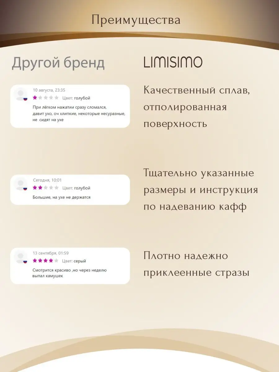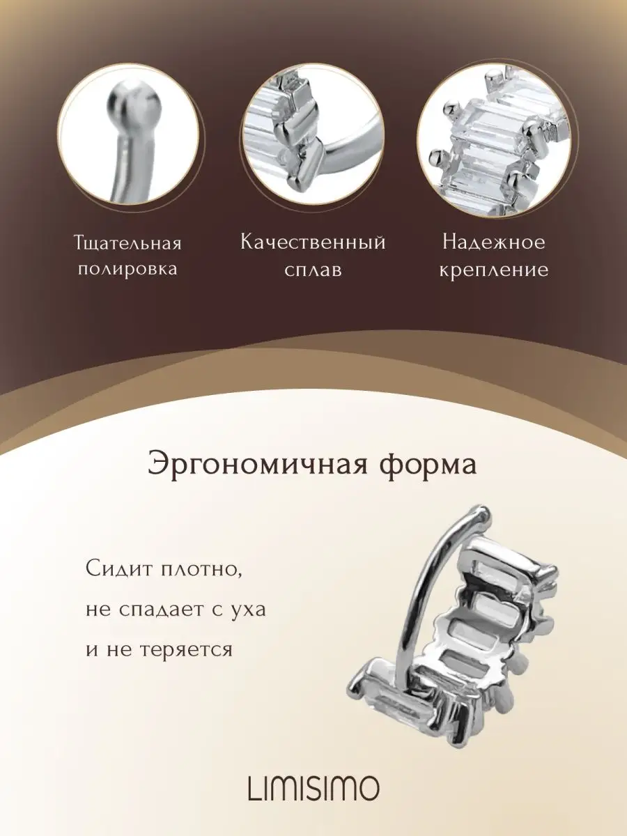 Описание: Каффа женская представляет собой украшение, которое можно использовать не делая прокол ушей. В комплекте 1 кафа на ухо размером 7 на 11 мм. Кафа весит всего 1,8 г. Украшения ювелирные изготовлены из гипоаллергенного бижутерного сплава, в ассортименте есть разные цвета: каффы золото а также кафа на ухо, похожая на серьги женские серебро. Приобретая каффы набор как клипсы на уши, вы получаете вечерние украшения для женщины с идеальной полировкой и полностью безопасные, без камней, как серьги из медицинской стали. Надежный зажим как застежка, тщательная полировка делают серьги женские бижутерия комфортными в повседневной носке. Каффа заменит ювелирные украшения, ведь бижутерия аксессуары доступны по цене и не требуют дополнительного прокола. Серьги трансформеры используют одновременно как разные украшения: моносерьга или серьги для девочек. Ювелирная бижутерия со стразами заменяет серьги золотые и даже сережки клевер, а также серьги серебро 925, потому что кафф выглядит так же изысканно, как серебряные серьги. Каффы можно носить как сережки для девочек в школу, поскольку серьги для девочек подходят даже подросткам, у которых еще не проколоты уши. Бижутерия женская серьги нравится всем без исключения: кафа на ухо серебро невесома и практична для повседневной жизни. Серьги каффы бижутерия следует беречь от воды, снимать перед водными процедурами и протирать чистой сухой салфеткой, используя средство для очищения. Каффы набор прослужит вам долго, если вы будете соблюдать правила ношения и рекомендации по эксплуатации. Каффы золото можно носить поодиночке или приобрести 2 шт, чтобы серьги каффы золото были парным комплектом. Такие многослойные украшения, как кафа серьги можно носить даже несколько штук на одном ухе. Женские серьги прочно держатся, не спадают и не цепляются за одежду, поэтому каффа идеально подходит девушке и женщине с любой прической, а также для подростков и даже мужчинам. Каффы как безопасные клипсы для ушей, заменяют серьги серебряные и пирсинг, а также серьги из медицинского сплава. Каффа смотрится элегантно и привлекательно. Клипса на ухо, благодаря своей простоте и стилю, выглядит лучше, чем разные дорогие украшения: серебро серьги женские с изумрудом и серьги пусеты, незаметные маленькие серьги сердце или детские серьги гвоздики. Клипсы удобнее, чем серьги кольца, потому что сережки кольца часто утяжеляют ухо. Каффы прочные и долговечные, они заметнее чем сережки гвоздики и при этом не мешаются, как большие и тяжелые серьги длинные в форме креста или протяжек. Одиночная каффа дополнит ваши любимые серьги конго и серьги клевер, ведь одну каффу можно носить вместе с другими украшениями. Когда выбирают ювелирные украшения для женщин, обращают внимания на сережки серебряные или пуссеты, на серьги из медицинской стали. Каффа станет подходящим дополнением к ним: моносерьга серебро смотрится шикарно в любом варианте. Ассиметричные каффы, как и сережки жемчуг, это классика и стиль. Золотые серьги и серьги серебро станут удачным сочетанием с кафой. Серебро, как и все украшения из серебра, подходят для всех возрастов: для мамы или дочери, бабушки или сестры. Металлические каффы можно носить любимой девушке или женщине, привлекательная бижутерия украсит женские уши и хрящ ушей также, как драгоценные сереж