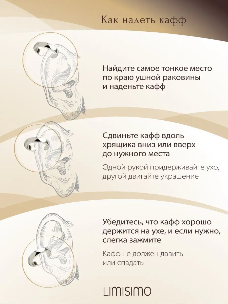 Описание: Каффа женская представляет собой украшение, которое можно использовать не делая прокол ушей. В комплекте 1 кафа на ухо размером 7 на 11 мм. Кафа весит всего 1,8 г. Украшения ювелирные изготовлены из гипоаллергенного бижутерного сплава, в ассортименте есть разные цвета: каффы золото а также кафа на ухо, похожая на серьги женские серебро. Приобретая каффы набор как клипсы на уши, вы получаете вечерние украшения для женщины с идеальной полировкой и полностью безопасные, без камней, как серьги из медицинской стали. Надежный зажим как застежка, тщательная полировка делают серьги женские бижутерия комфортными в повседневной носке. Каффа заменит ювелирные украшения, ведь бижутерия аксессуары доступны по цене и не требуют дополнительного прокола. Серьги трансформеры используют одновременно как разные украшения: моносерьга или серьги для девочек. Ювелирная бижутерия со стразами заменяет серьги золотые и даже сережки клевер, а также серьги серебро 925, потому что кафф выглядит так же изысканно, как серебряные серьги. Каффы можно носить как сережки для девочек в школу, поскольку серьги для девочек подходят даже подросткам, у которых еще не проколоты уши. Бижутерия женская серьги нравится всем без исключения: кафа на ухо серебро невесома и практична для повседневной жизни. Серьги каффы бижутерия следует беречь от воды, снимать перед водными процедурами и протирать чистой сухой салфеткой, используя средство для очищения. Каффы набор прослужит вам долго, если вы будете соблюдать правила ношения и рекомендации по эксплуатации. Каффы золото можно носить поодиночке или приобрести 2 шт, чтобы серьги каффы золото были парным комплектом. Такие многослойные украшения, как кафа серьги можно носить даже несколько штук на одном ухе. Женские серьги прочно держатся, не спадают и не цепляются за одежду, поэтому каффа идеально подходит девушке и женщине с любой прической, а также для подростков и даже мужчинам. Каффы как безопасные клипсы для ушей, заменяют серьги серебряные и пирсинг, а также серьги из медицинского сплава. Каффа смотрится элегантно и привлекательно. Клипса на ухо, благодаря своей простоте и стилю, выглядит лучше, чем разные дорогие украшения: серебро серьги женские с изумрудом и серьги пусеты, незаметные маленькие серьги сердце или детские серьги гвоздики. Клипсы удобнее, чем серьги кольца, потому что сережки кольца часто утяжеляют ухо. Каффы прочные и долговечные, они заметнее чем сережки гвоздики и при этом не мешаются, как большие и тяжелые серьги длинные в форме креста или протяжек. Одиночная каффа дополнит ваши любимые серьги конго и серьги клевер, ведь одну каффу можно носить вместе с другими украшениями. Когда выбирают ювелирные украшения для женщин, обращают внимания на сережки серебряные или пуссеты, на серьги из медицинской стали. Каффа станет подходящим дополнением к ним: моносерьга серебро смотрится шикарно в любом варианте. Ассиметричные каффы, как и сережки жемчуг, это классика и стиль. Золотые серьги и серьги серебро станут удачным сочетанием с кафой. Серебро, как и все украшения из серебра, подходят для всех возрастов: для мамы или дочери, бабушки или сестры. Металлические каффы можно носить любимой девушке или женщине, привлекательная бижутерия украсит женские уши и хрящ ушей также, как драгоценные сереж