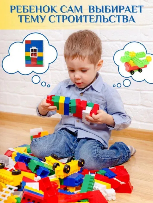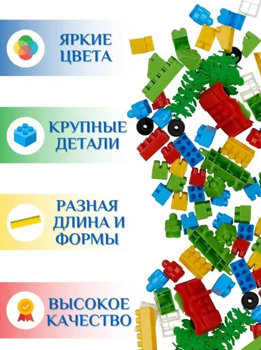 Сертифицированный детский конструктор пластиковый 300 КРУПНЫХ деталей ( 3см*3см ), Яркие конструкторы для детей в мешке / подарок ребенку и малышу